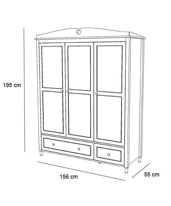 Met de 3 deurs kast Emma haal je een hoge kwaliteitsproduct in huis waar je jaren plezier van zult hebben. De kledingkast Emma mag natuurlijk niet ontbreken in een echte prinsessenkamer. Heb je geen ruimte voor de 3 deurs kast Emma? Kies dan voor de 2 deurs kast Emma.
