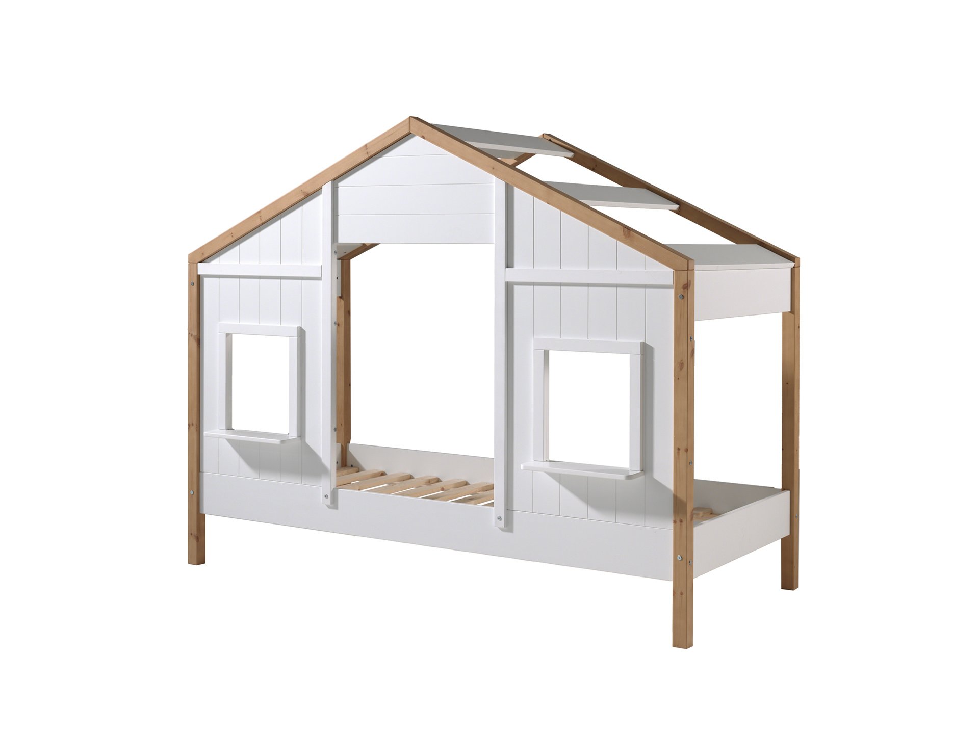 Je voelt je letterlijk thuis in je eigen bed. De leuke vensterbankjes bij de ramen van het bed zijn ideaal als nachtkastje voor knuffels of een lampje. Het bed is gemaakt van massieve grenen balken en MDF panelen, wat meer dimensie geeft aan het bed.