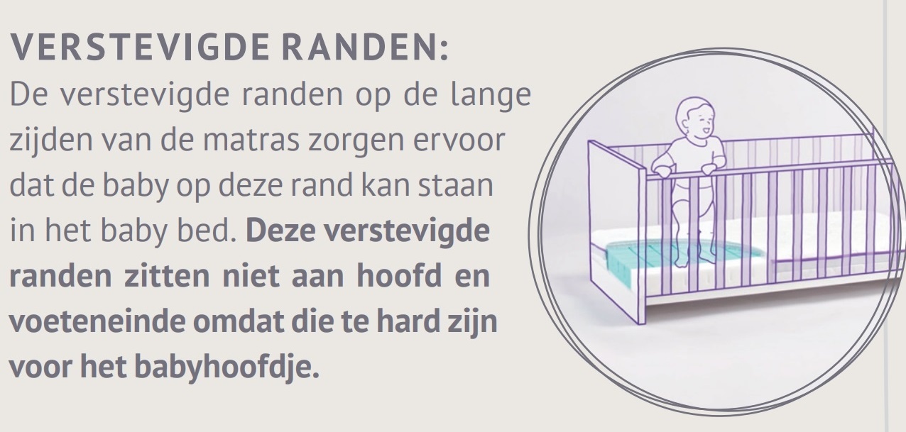 1. Verstevigde randen: Als je baby wat groter wordt en kan staan dan zorgt een babymatras met verstevigde randen aan de zijkant voor extra stabiliteit en comfort (matras met deze eigenschap: Lake, Sea en Waterfall)