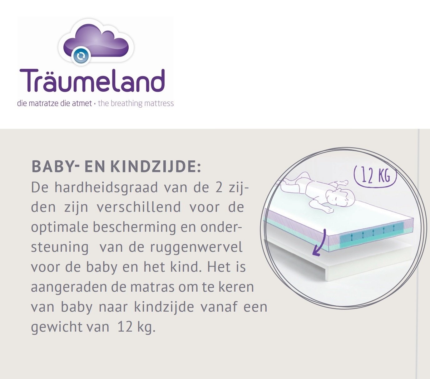 Het Oostenrijkse familiebedrijf Träumeland maakt al 50 jaar luxe babymatrassen. Het unieke van deze matrassen is dat ze écht ademen. Dit komt omdat ze altijd een luxe kern van geventileerd koudschuim gebruiken.