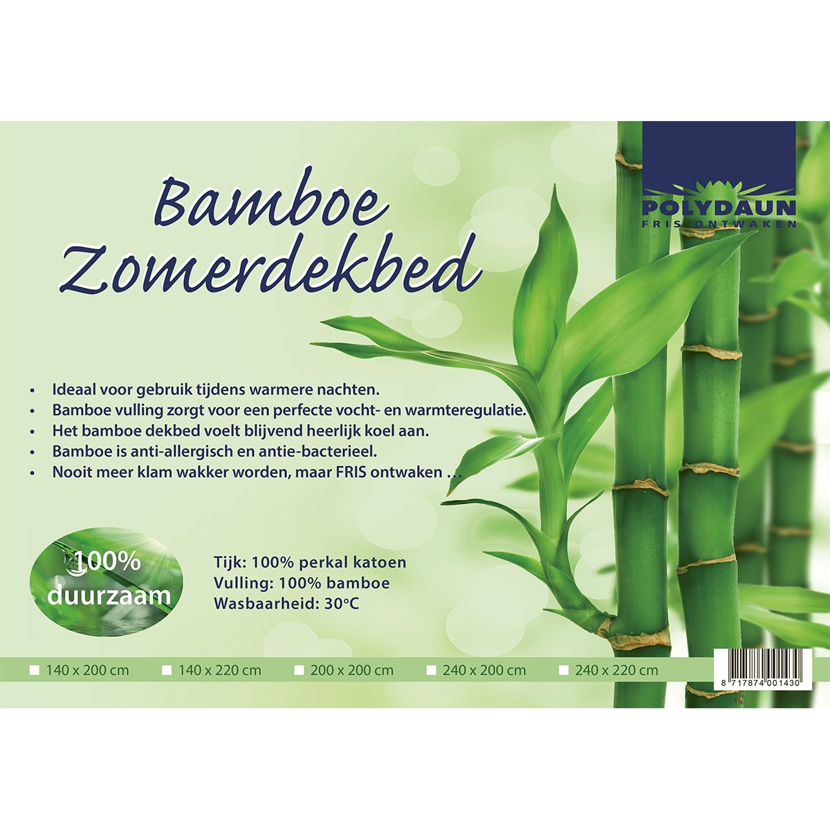Het bamboe dekbed is het luxe alternatief voor het katoenen zomerdekbed. Bamboe voelt van nature koel aan, maar is ook licht in gewicht en daarom uitermate geschikt voor warme nachten.