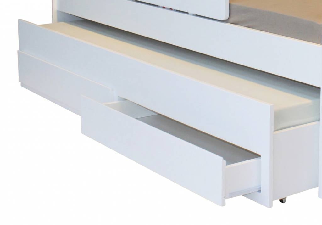 In de lade past een matras van 90x190 cm. Hierdoor heb je altijd binnen een handomdraai een extra logeerplek. Ideaal als er vriendjes of vriendinnetjes komen logeren. Ook handig wanneer je kind zich niet lekker voelt of een nachtmerrie heeft. Je kunt dan gemakkelijk naast haar liggen in de slaaplade.