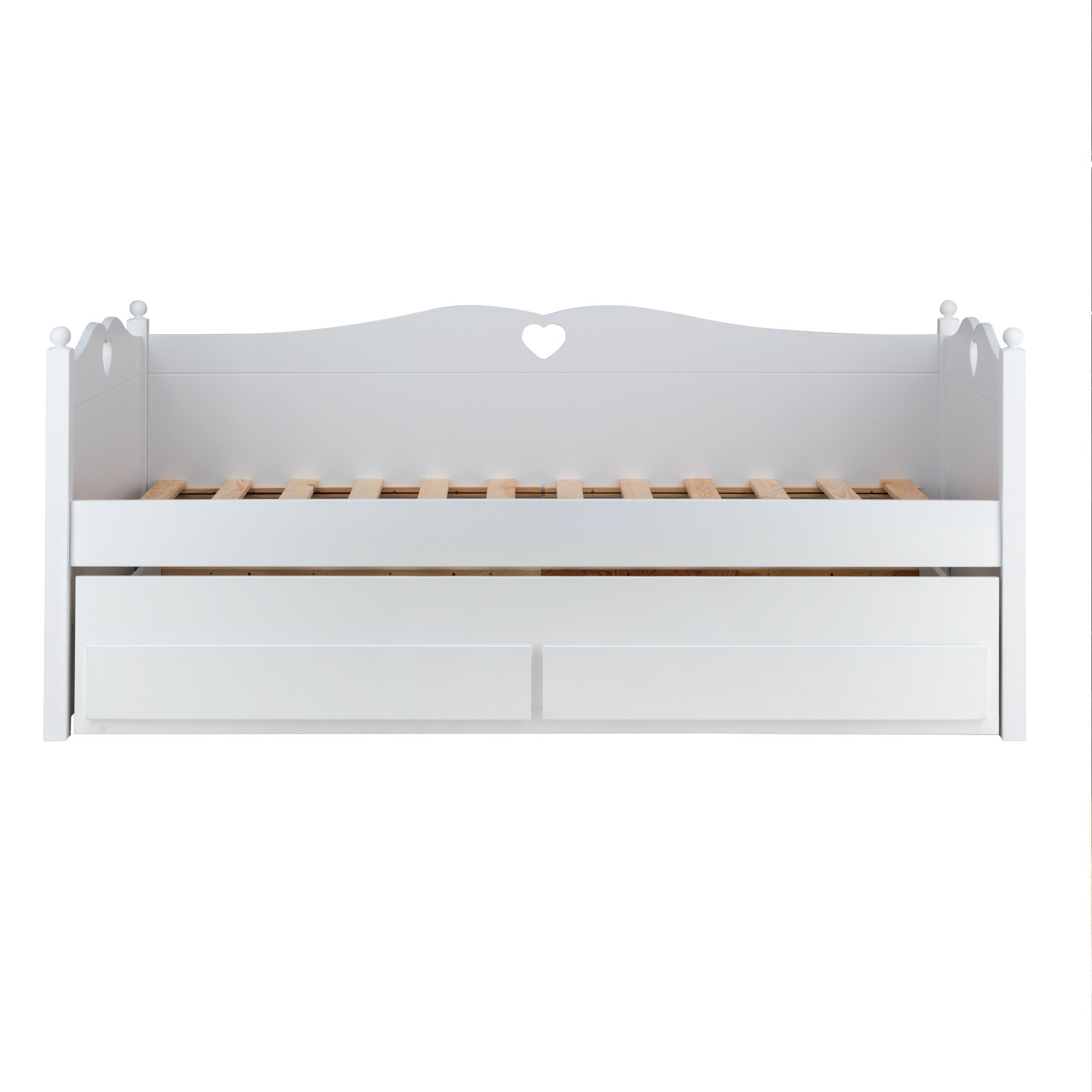 Deze variant van de bedbank Emma wordt compleet geleverd met een onderschuifbed op wieltjes. De slaap- en opberglade is een grote lade onder het bed die je gemakkelijk kunt uittrekken.