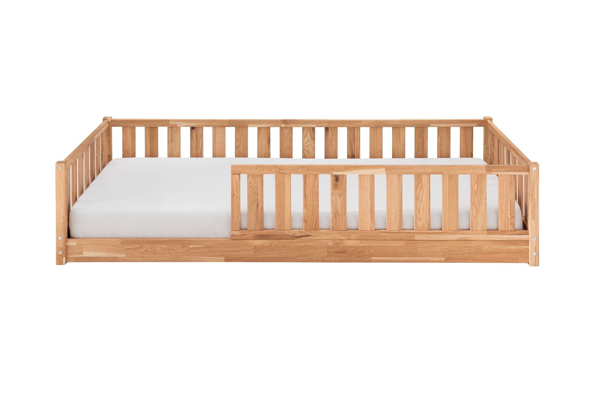 Het Fenna bodembed (ook bekend als vloerbed of Montessori-bed) van is perfect als peuter- of kinderbed. De balustrades voorkomen dat je kleintje uit bed rolt, terwijl de lage instap ervoor zorgt dat je kind zelfstandig in en uit bed kan stappen.