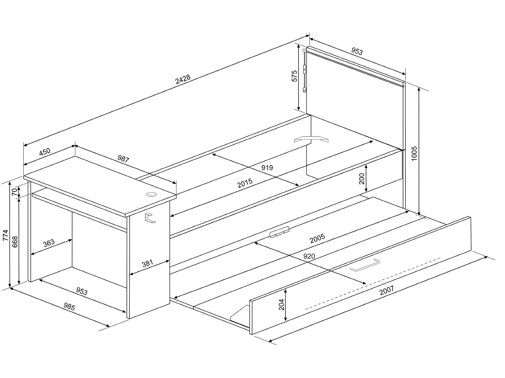 Inclusief bureau en slaaplade