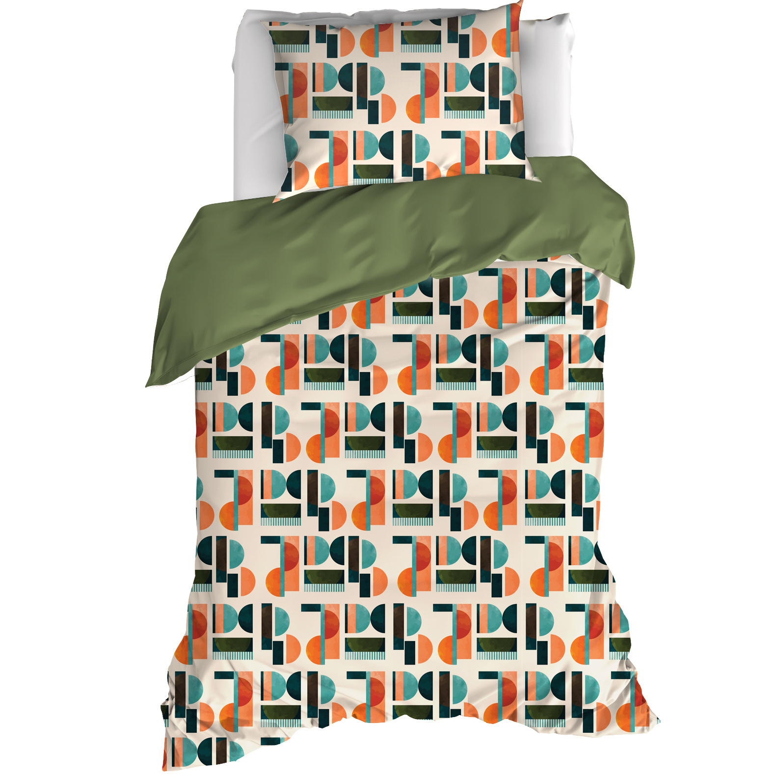 De Witte Lietaer Dekbedovertrek Lisboa, Grenoble Green - Eenpersoons - 140 x 220 cm + 60 x 70 cm - Katoen Percal