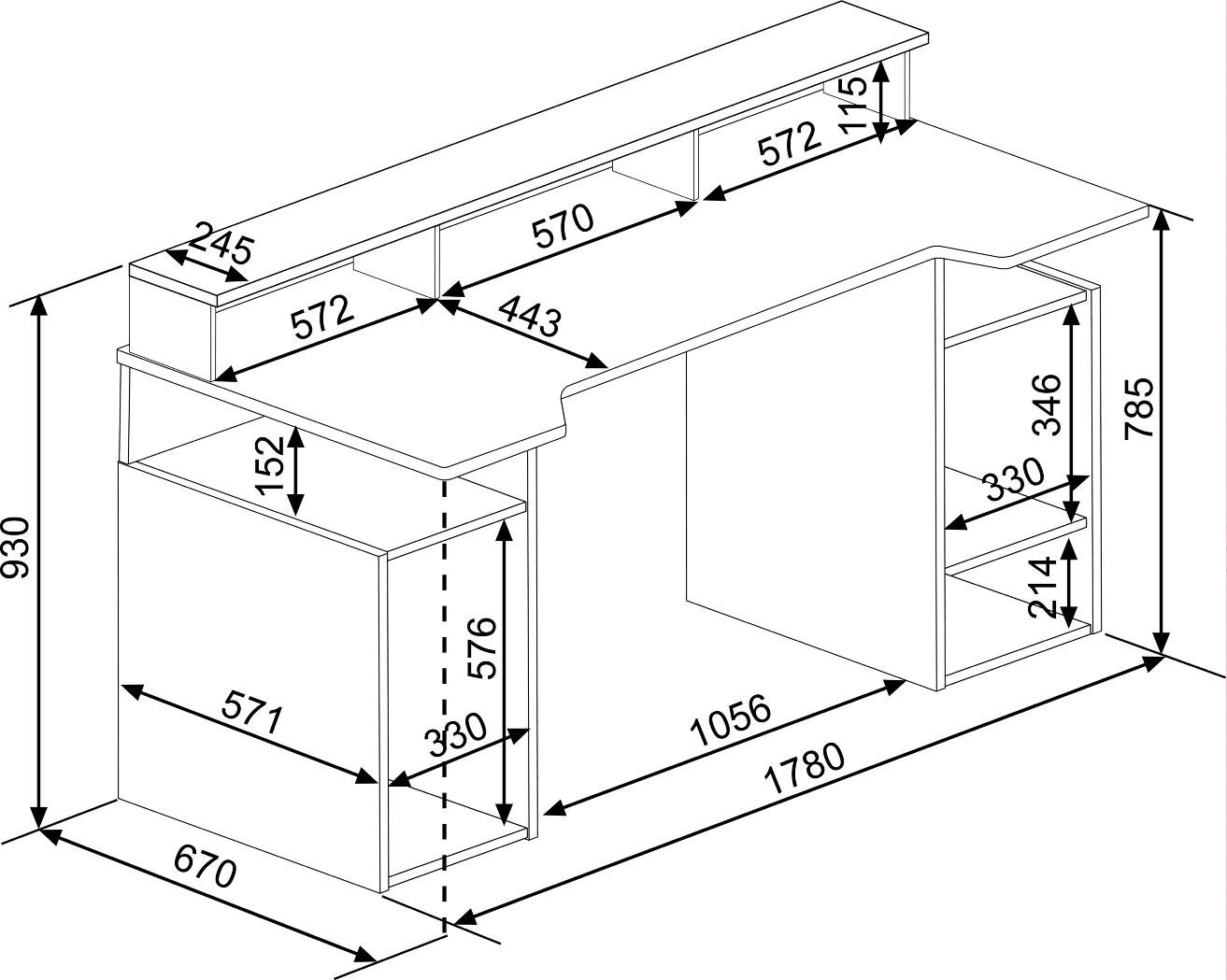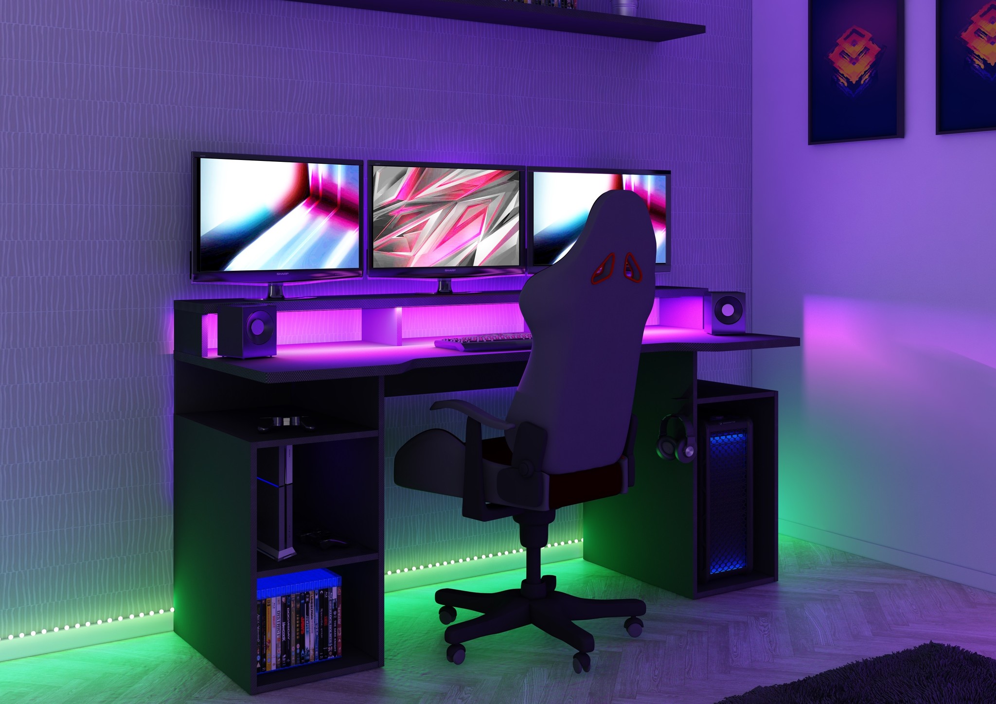 Je kunt gemakkelijk huiswerk maken aan dit bureau, je spullen goed opbergen en zelfs lekker en comfortabel gamen.