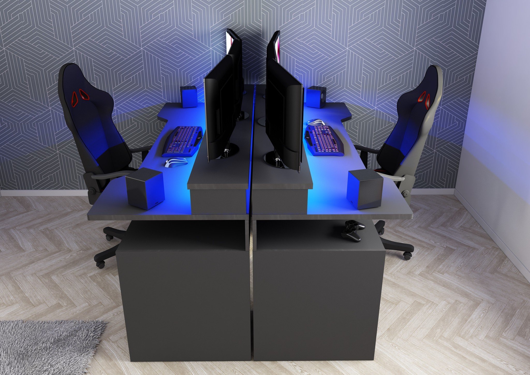 Supertof gamebureau met veel mogelijkheden. Je kunt gemakkelijk huiswerk maken aan dit bureau, je spullen goed opbergen en zelfs lekker en comfortabel gamen. Wie wil dit nu niet in deze tijd!?