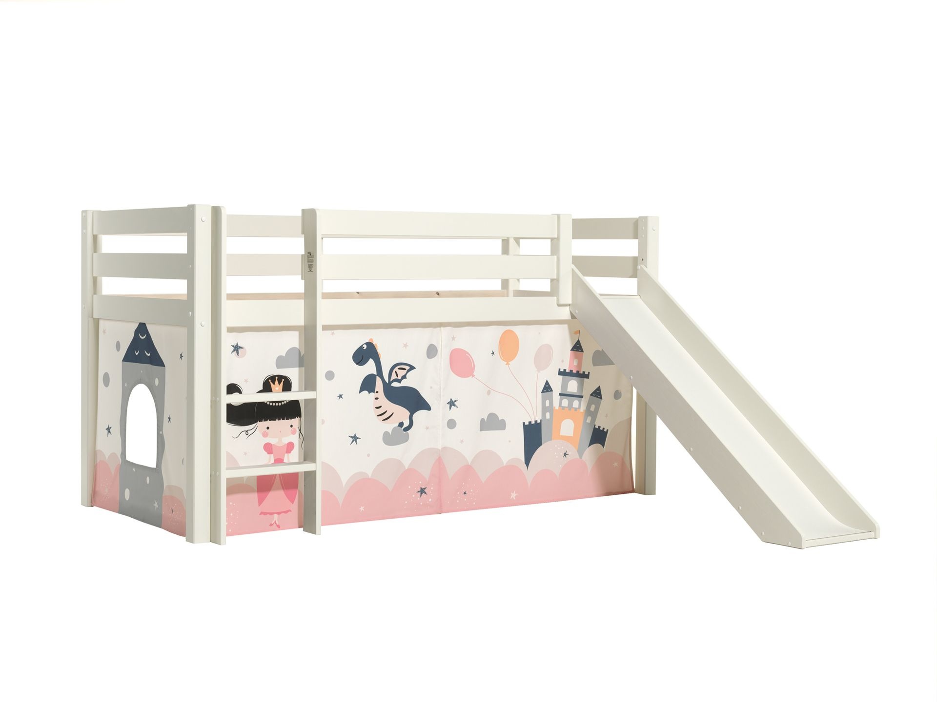 Klassieke halfhoogslaper Charlotte. Een tijdloos model dat al in talloze kinderkamers staat, met speelruimte onder het bed en een optionele glijbaan.