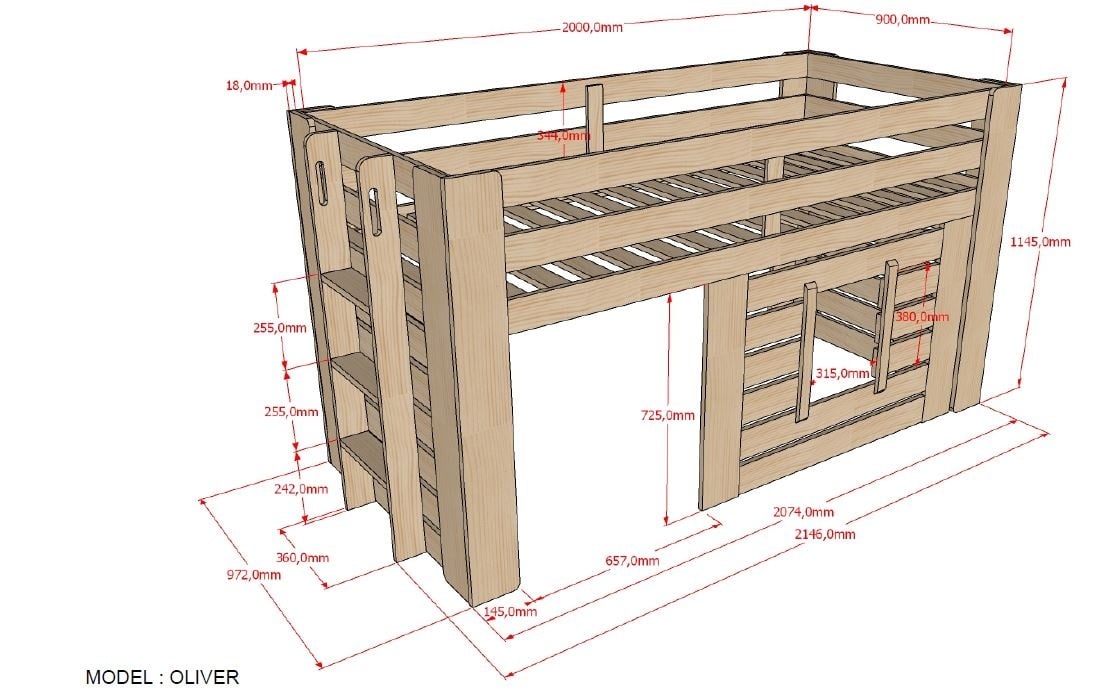 Met de halfhoogslaper Oliver haal je niet alleen een bed in huis, maar ook extra ruimte. Het verhoogde ontwerp biedt een handige speelplek onder het bed. Dit is ideaal voor kleinere kamers waar je elke centimeter ruimte wilt benutten. Het bed is stevig, veilig en geschikt voor kinderen van verschillende leeftijden.