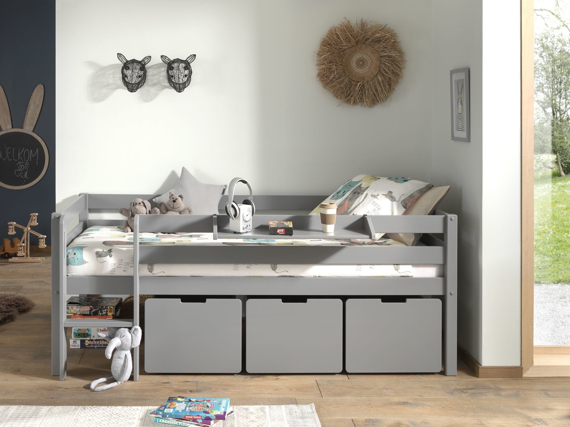Halfhoogslaper Pino - Grijs - 90x200cm - met 3 lades en bedplank (variant 6)