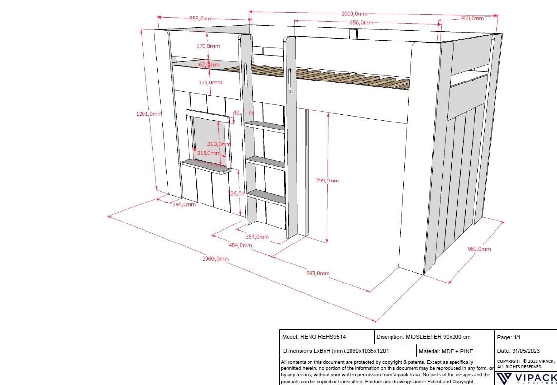 De halfhoogslaper Reno van Vipack is precies wat je nodig hebt. Deze trendy halfhoogslaper biedt niet alleen een comfortabele slaapplaats, maar ook extra ruimte om lekker onder het bed te spelen. Perfect voor kleinere kamers waar je het meeste uit de ruimte wilt halen.