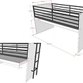 Dit is een handige halfhoogslaper van topkwaliteit met een standaard uitschuifbaar bureaublad en metalen trap en uitvalbeveiliging in het zwart. Dit bureaublad is over de gehele lengte van het bed, hierdoor is het een fantastisch groot werkblad om heerlijk op te knutselen of als het moet huiswerk aan te maken.