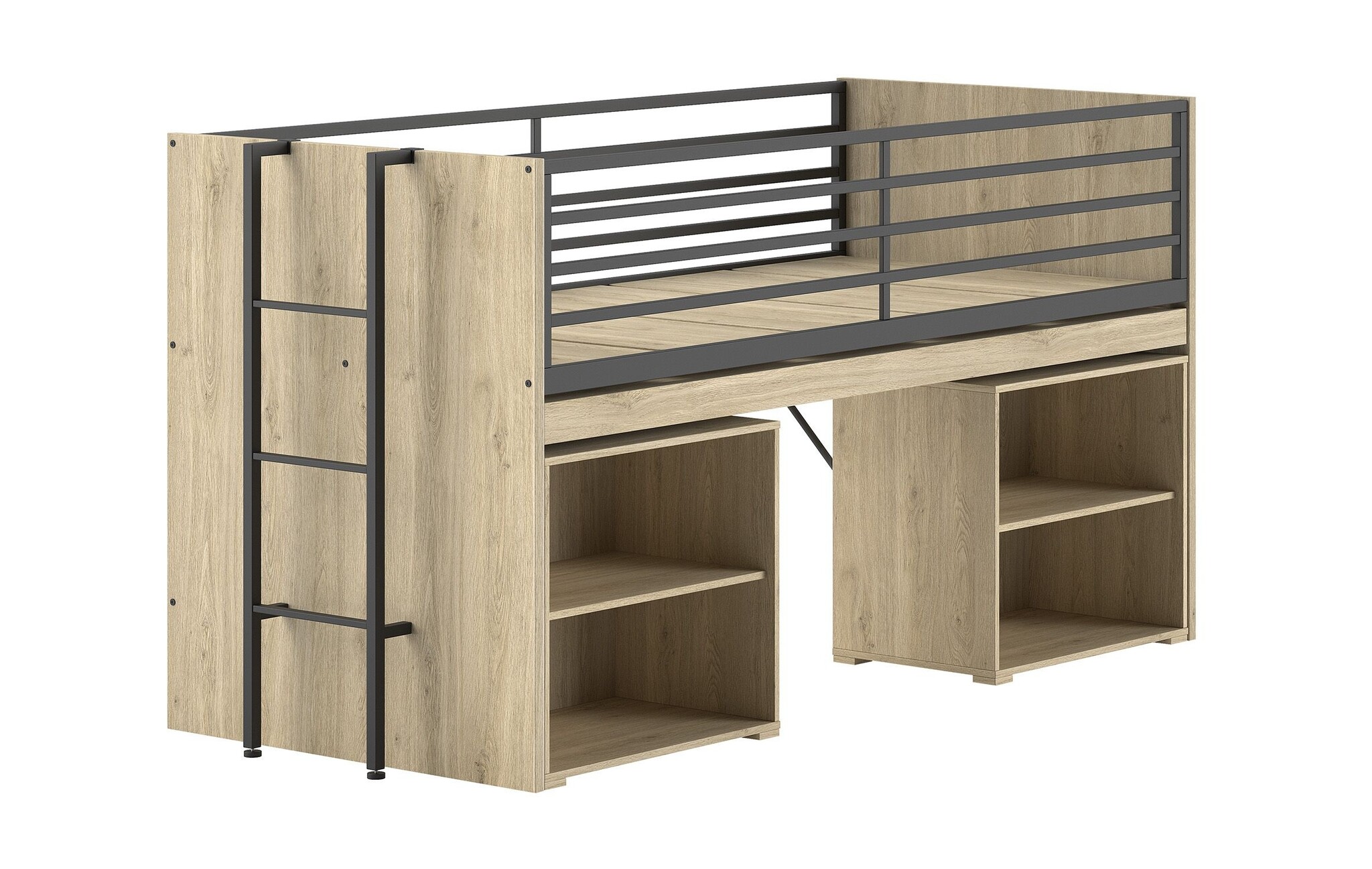 Nieuw in onze collectie is deze prachtige en multifunctionele halfhoogslaper met industrieel ontwerp.
