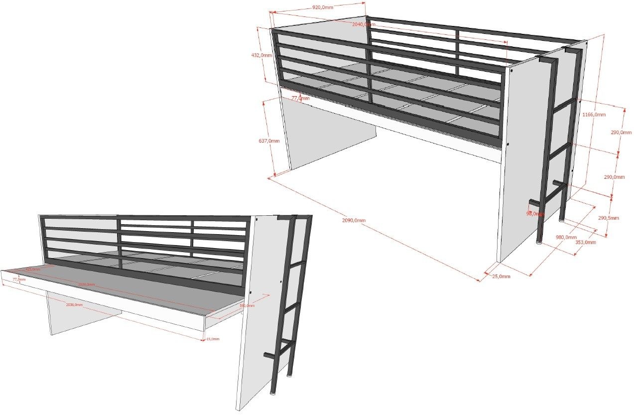Dit is een handige halfhoogslaper van topkwaliteit met een standaard uitschuifbaar bureaublad en metalen trap en uitvalbeveiliging in het zwart. Dit bureaublad is over de gehele lengte van het bed, hierdoor is het een fantastisch groot werkblad om heerlijk op te knutselen of als het moet huiswerk aan te maken.