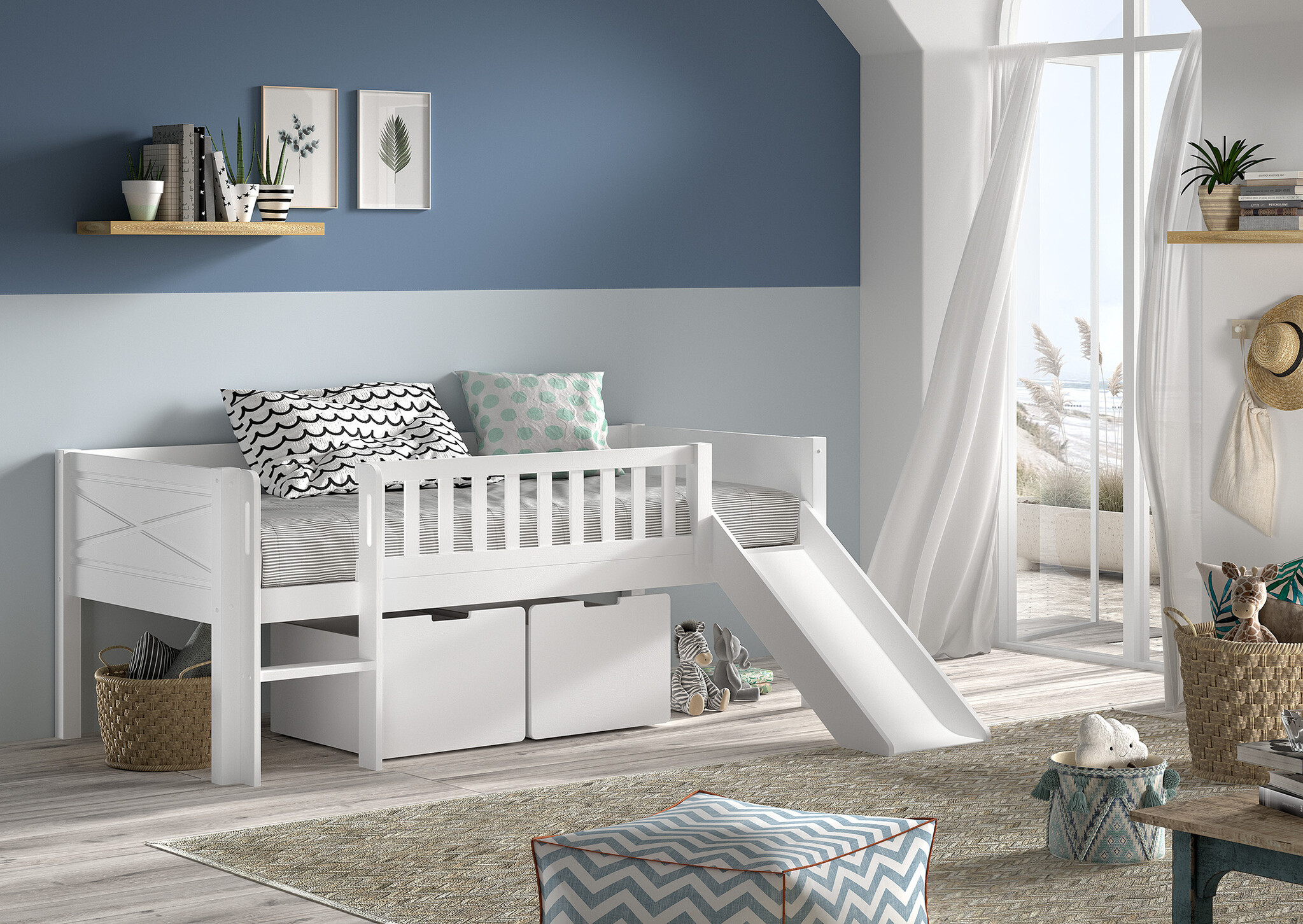 Halfhoogslaper Scott - laag model met glijbaan en lades