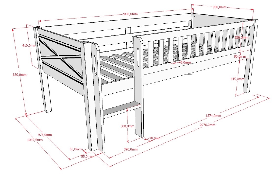 Het is een perfecte tussenstap om iets hoger te slapen, zonder te hoog te klimmen. Deze hoogte is ook ideaal voor ouders als ze de beddengoed moeten verschonen.