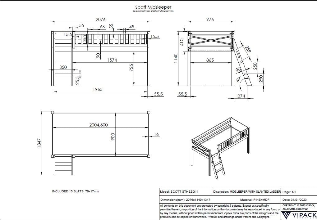 | Matrasmaat | 90x200cm (het matras mag maximaal 20cm dik zijn) |