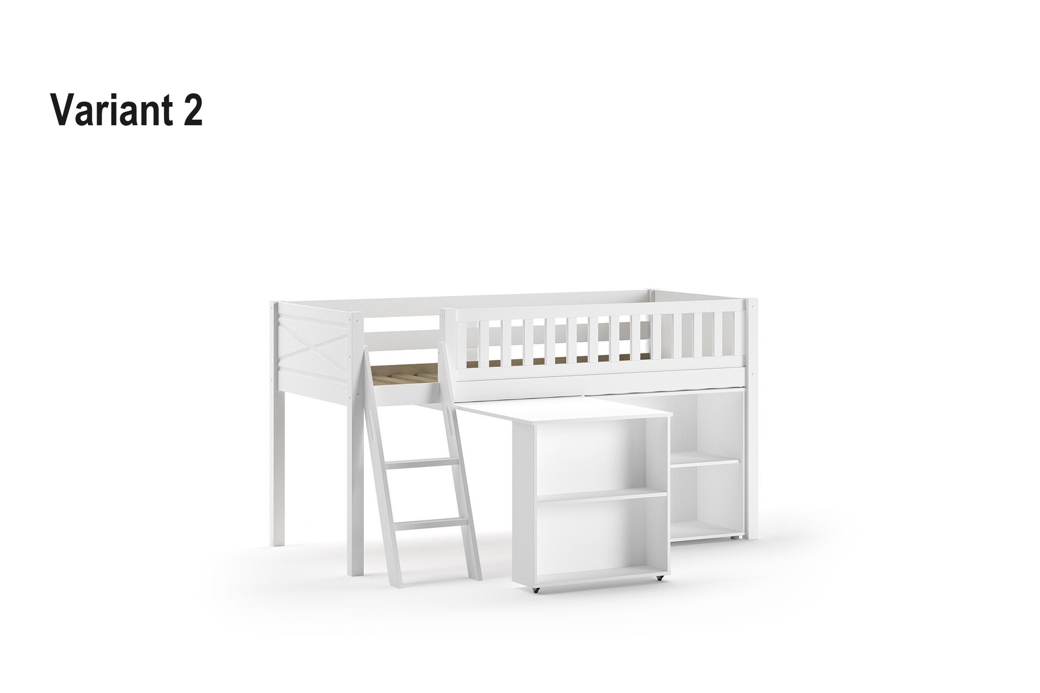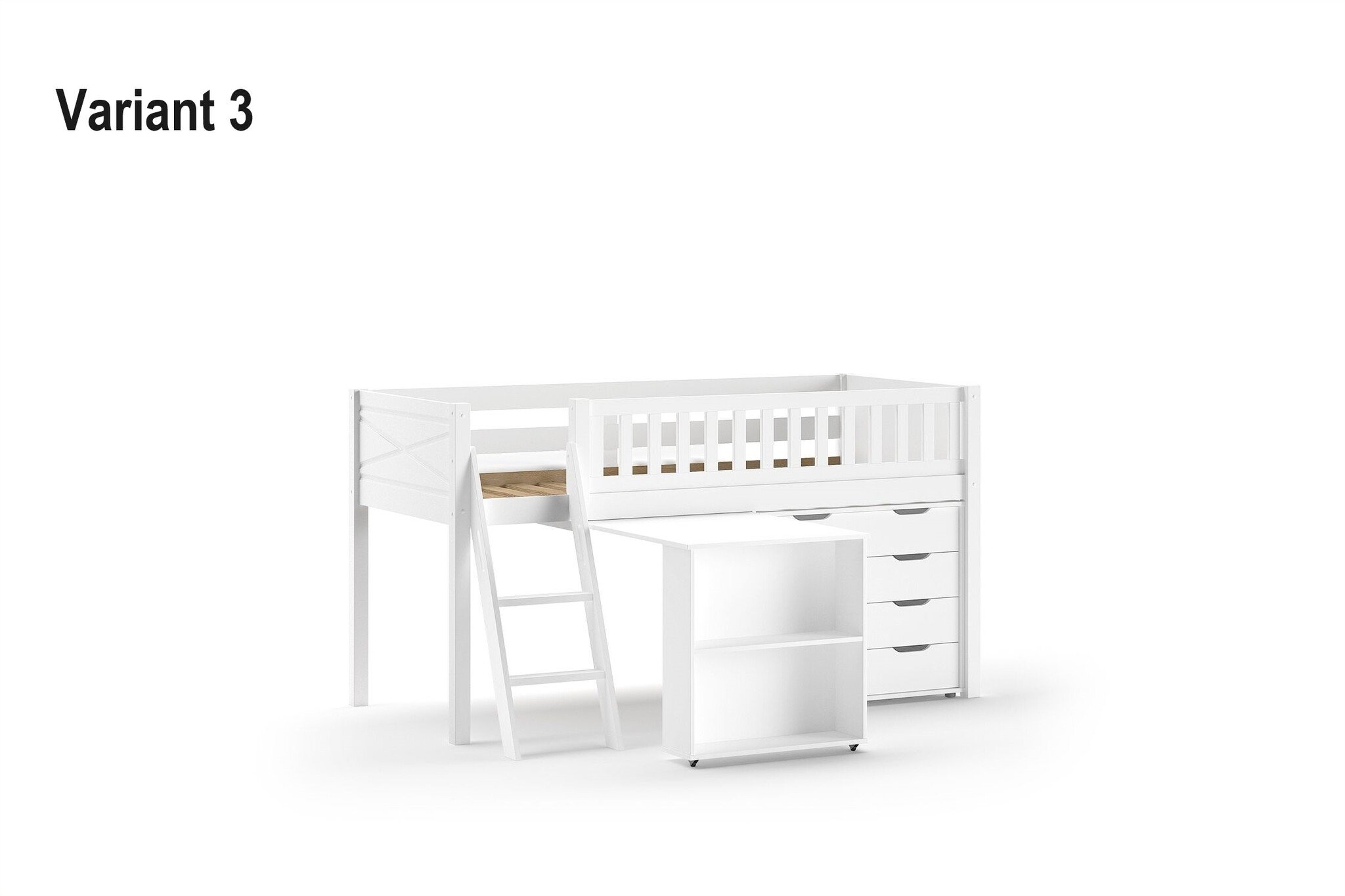 Voor de halfhoogslaper Scott zijn nog diverse extra items beschikbaar om het bed te voorzien van een bureau en extra kastruimte. Er passen maximaal 3 items onder een bed, en zijn door elkaar te combineren.