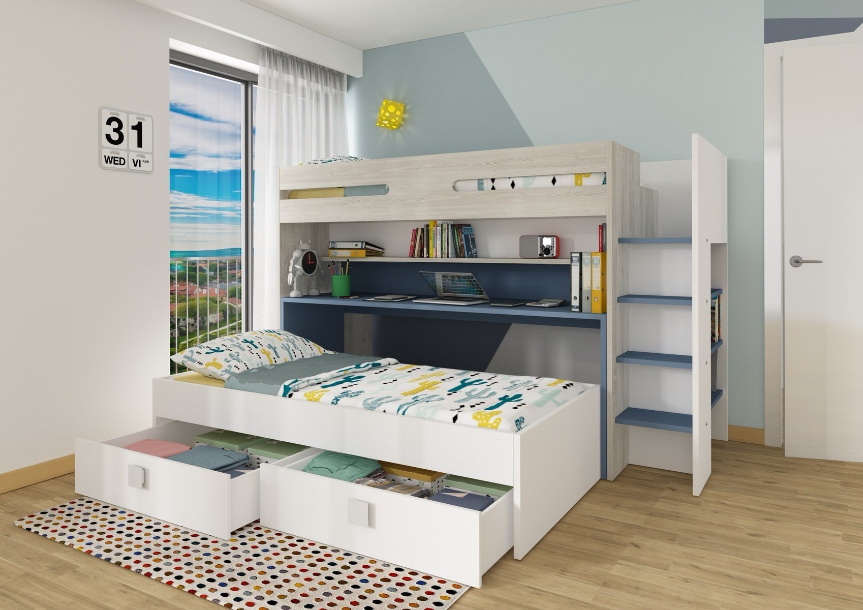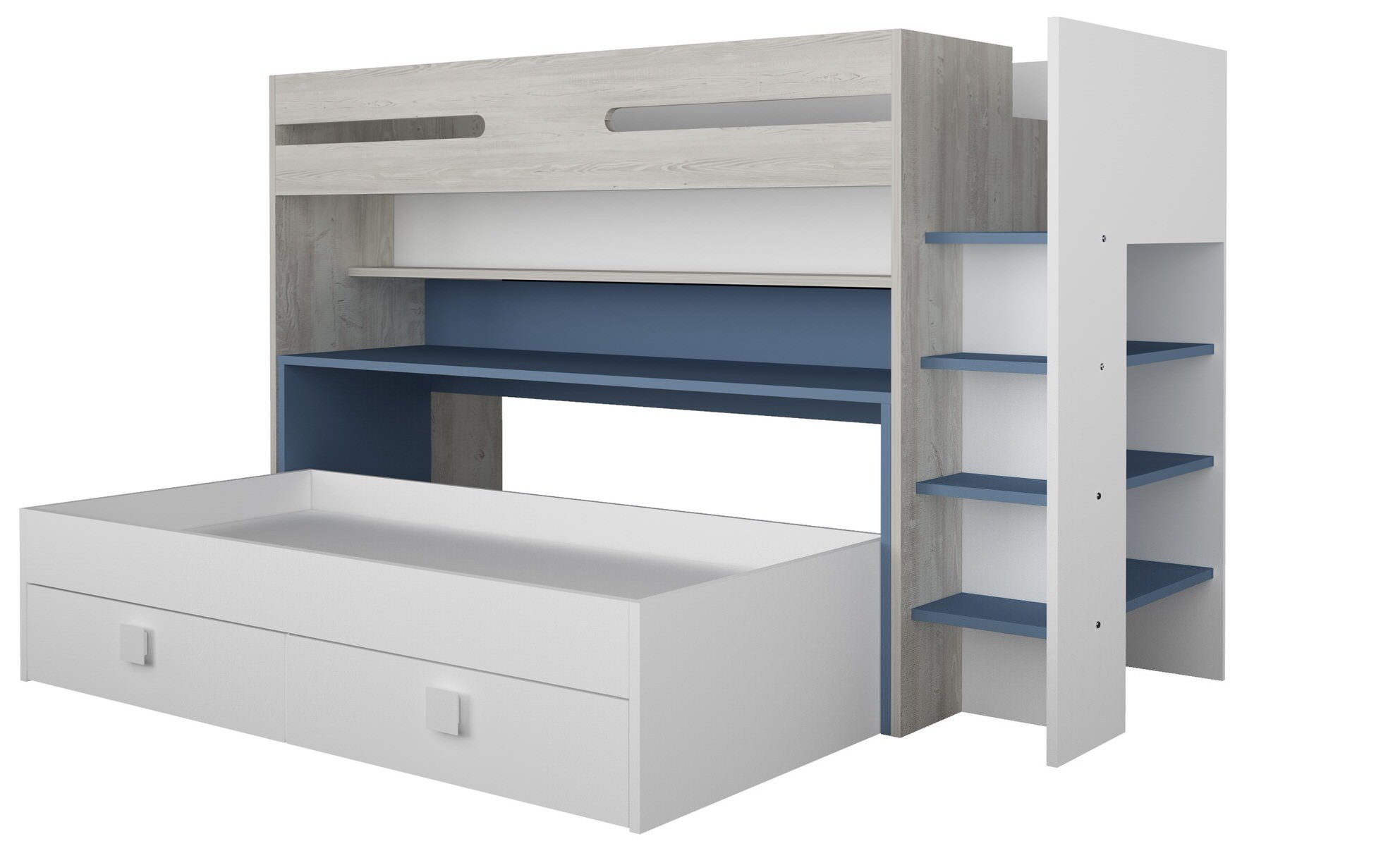 Hoogslaper Spectra Blauw met bureau en bed