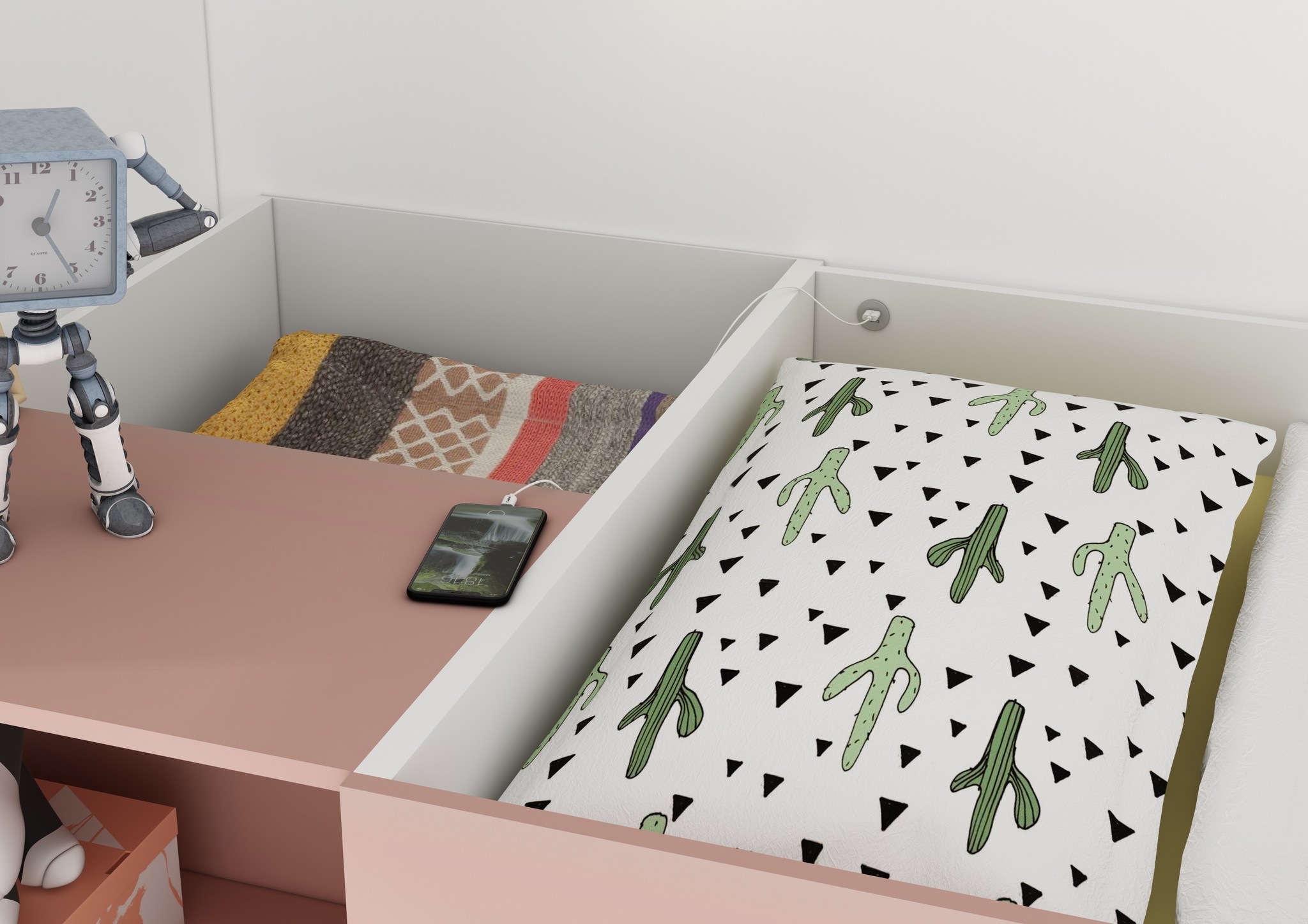 De hoogslaper (90x200) is gemaakt van hoogwaardige houtvezelplaat met melamine afwerking.