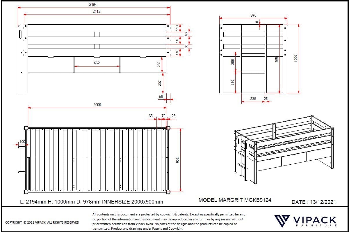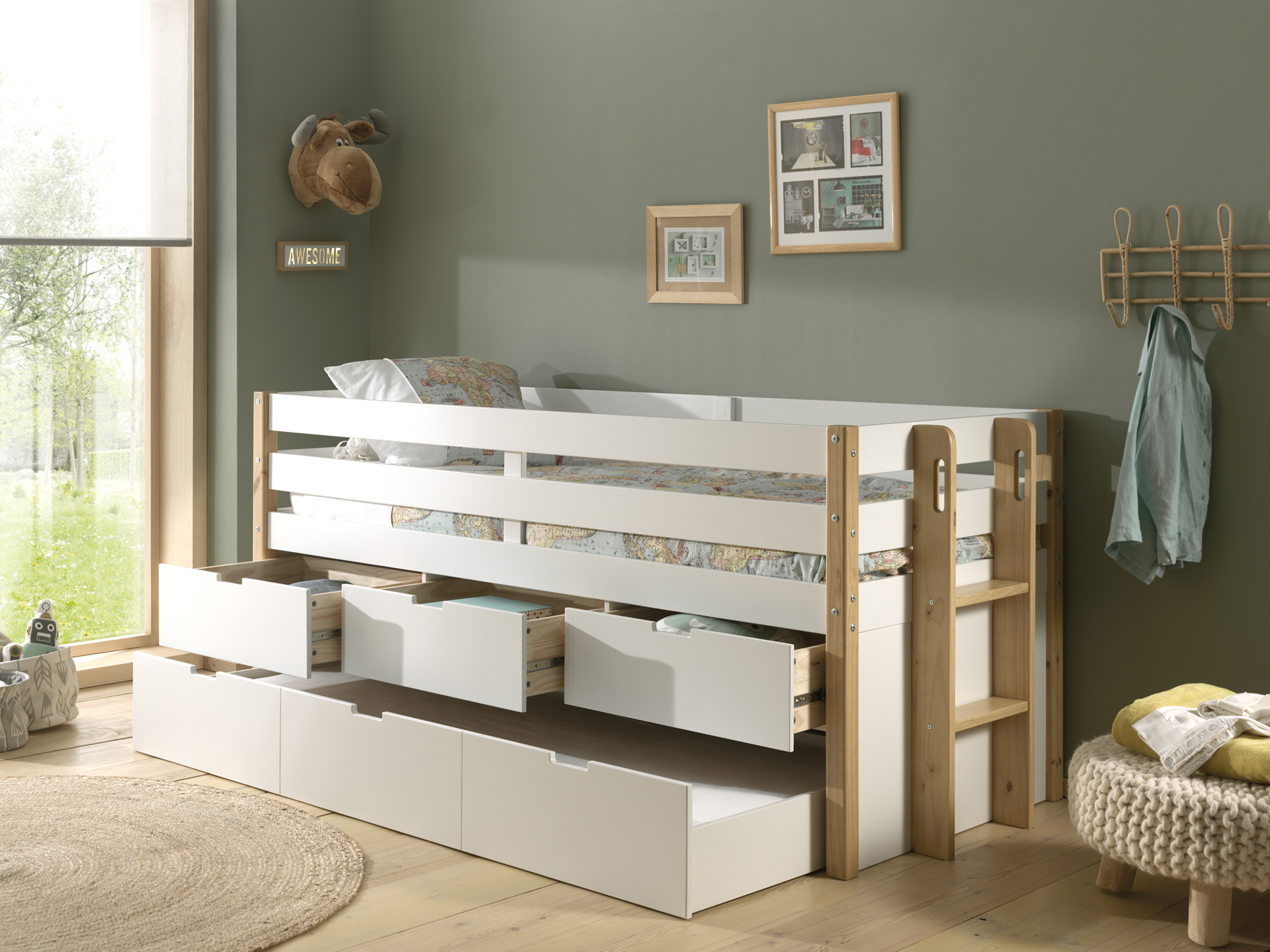 Variant 2: kajuitbed met 3 lades én slaaplade (in de slaaplade past een matras van 90x190)