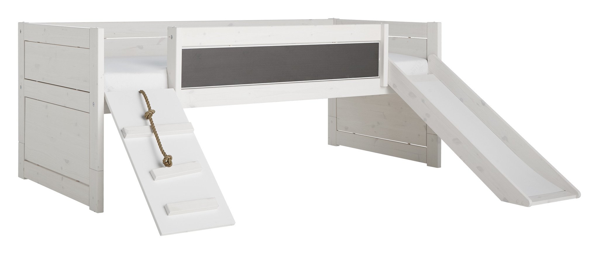 Dit avontuurlijke kajuitbed straalt spelen uit. De loopplank om het bed in te komen is voorzien van een touw om je aan op te trekken. Het voorpaneel is voorzien van een krijtbord. Inclusief glijbaan.