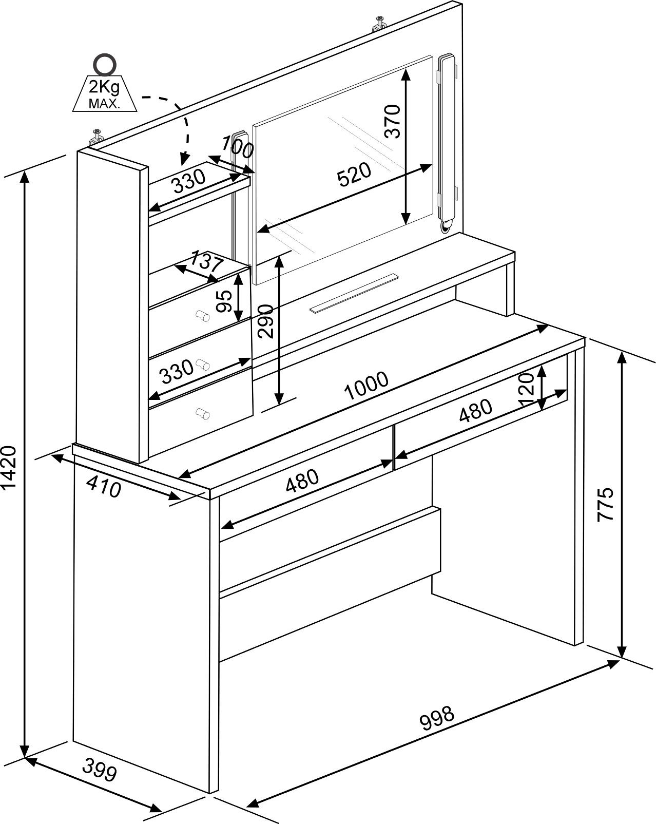 | Afmetingen | hxbxd: 142x100x40cm |