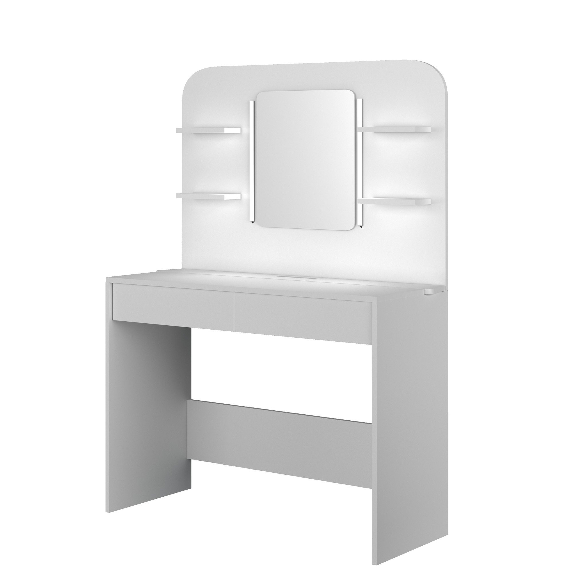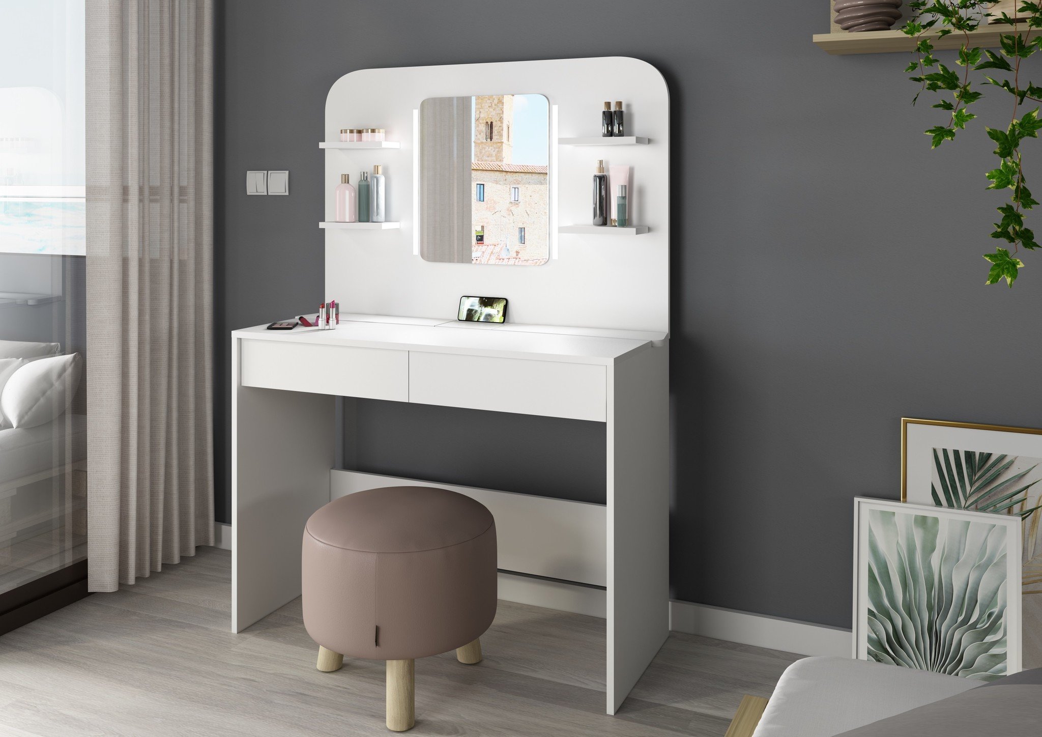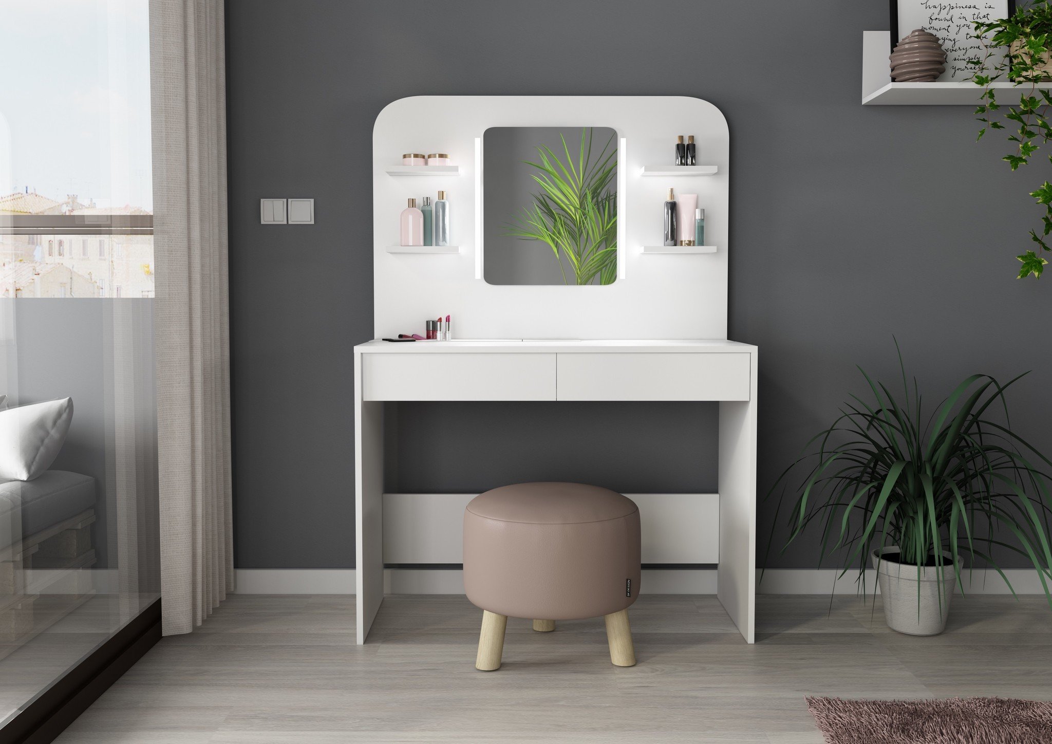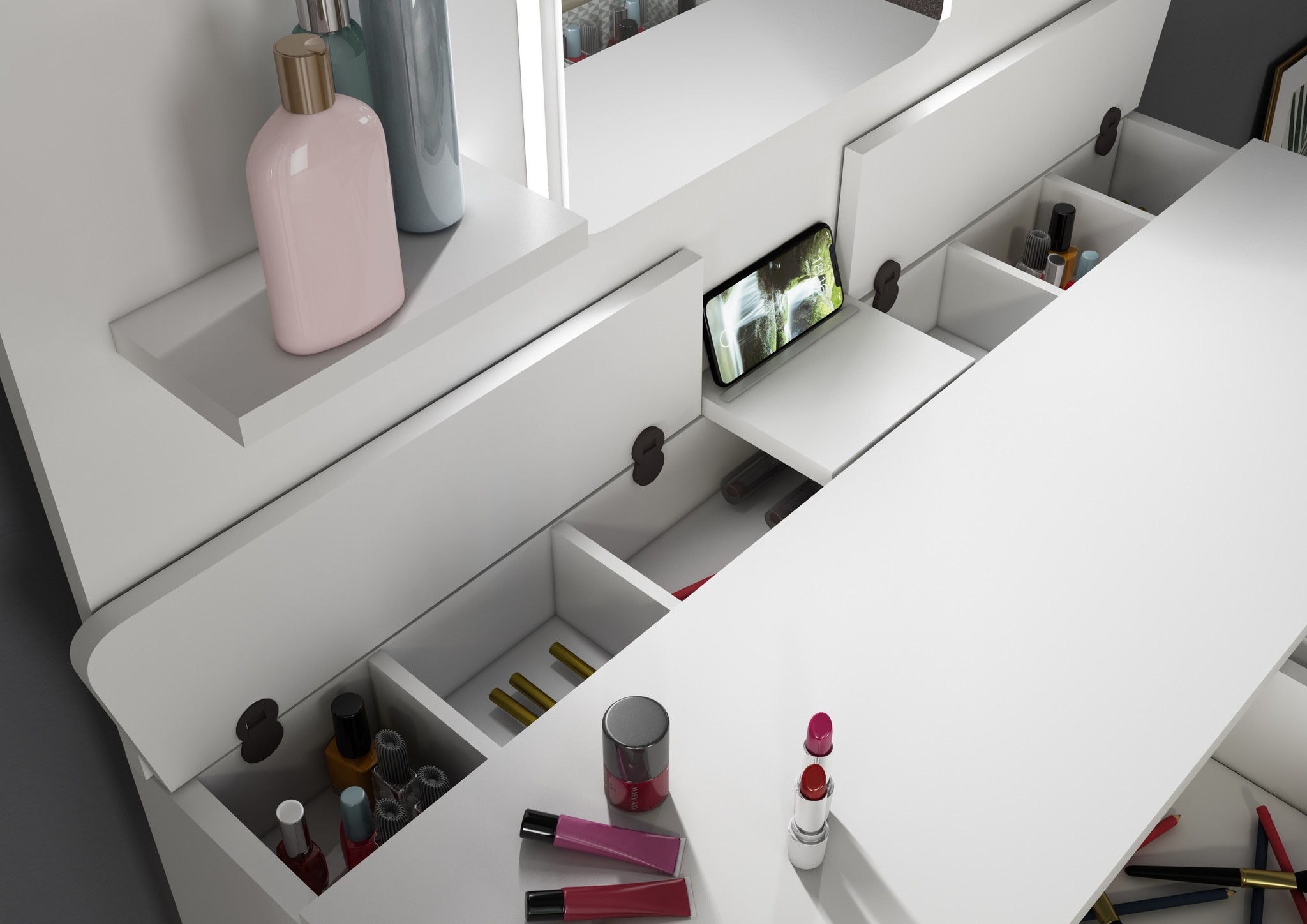 Een fijne en ruime kaptafel met LED verlichting, spiegel en veel opbergruimte.