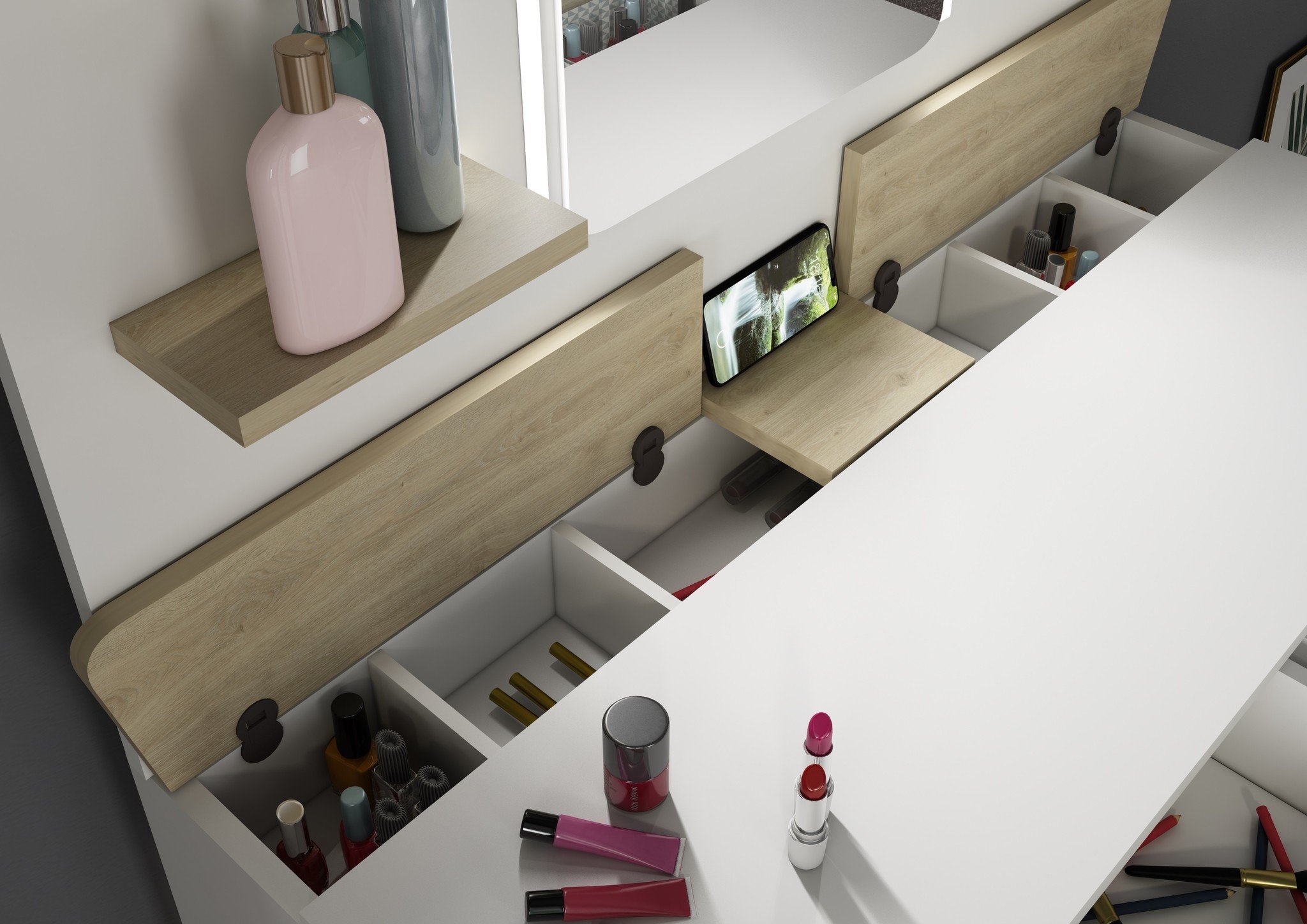 Kaptafel Vanity Secret - Make-up tafel - Eiken/wit