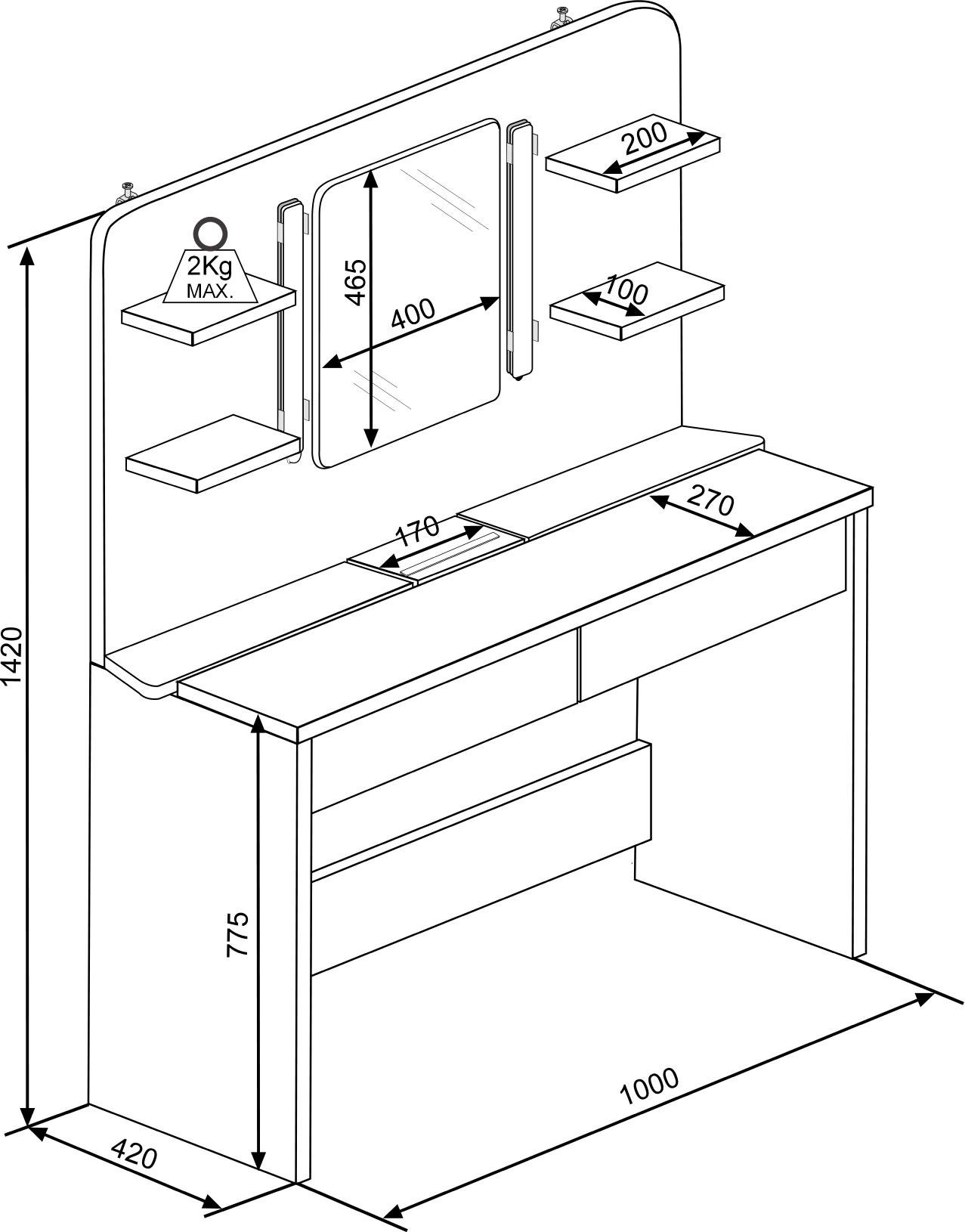 | Afmetingen | hxbxd: 142x100x42cm |