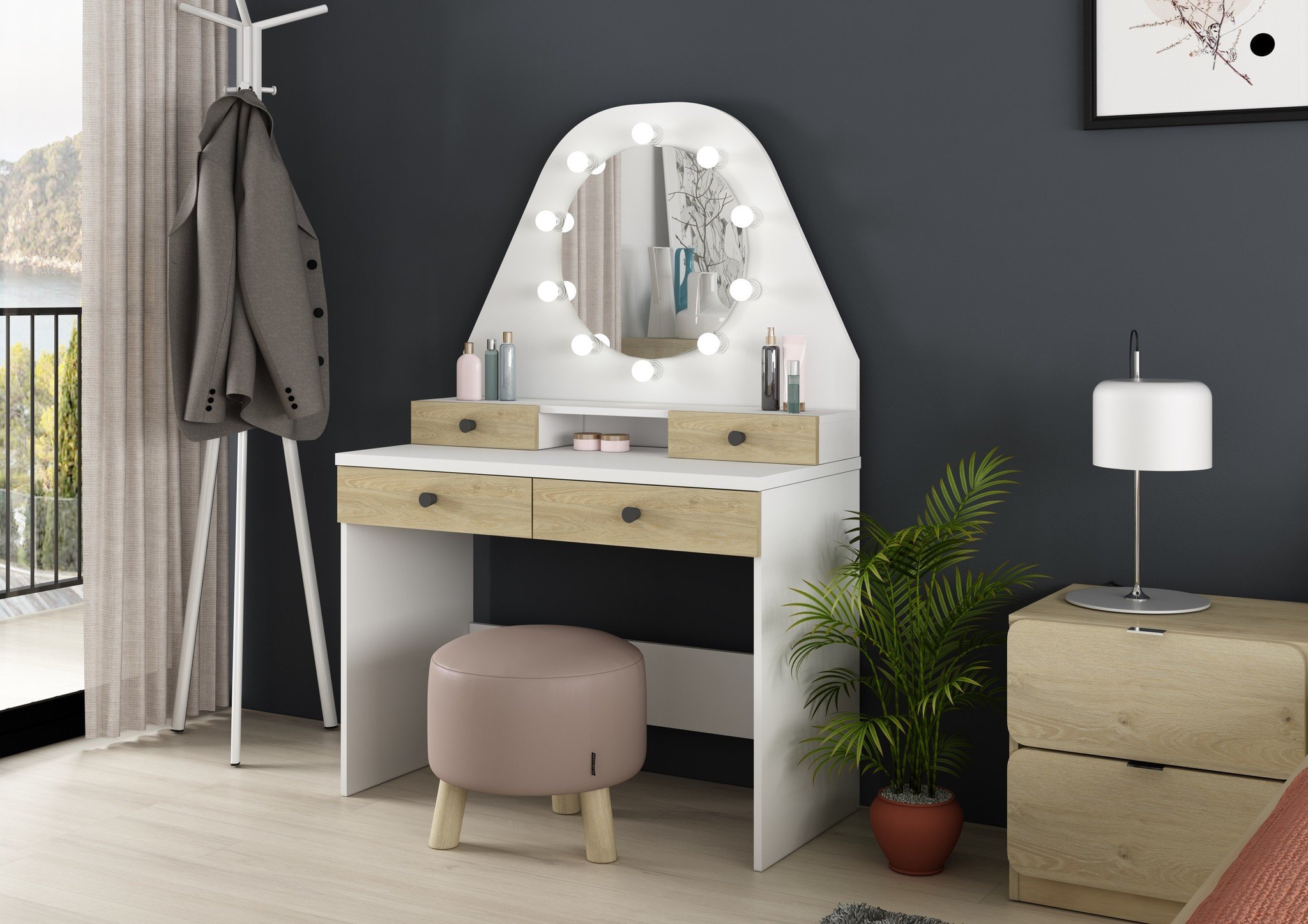 Kaptafel Vanity Star - Make-up tafel - Eiken/wit