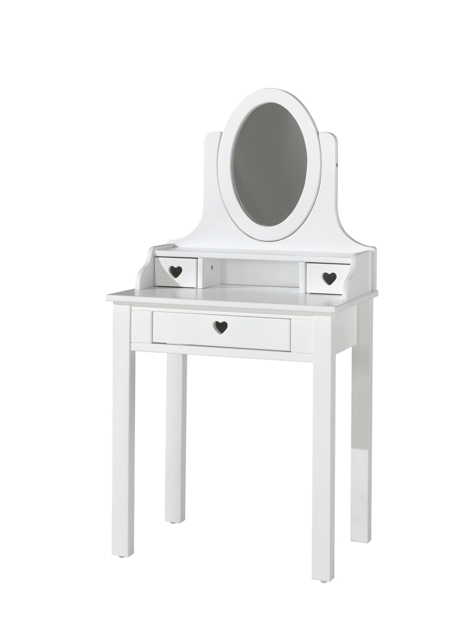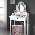 De kaptafel in wit uit de Amori collectie combineert een tijdloos, fris design met zachte, romantische accenten.