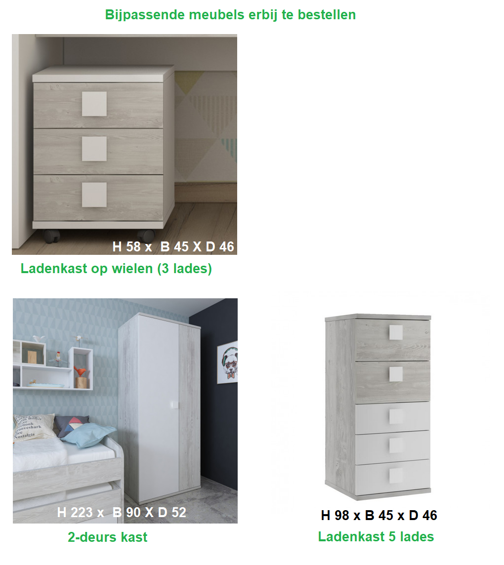 | Matrasmaat | 90x200cm en 90x190 (slaaplade) |