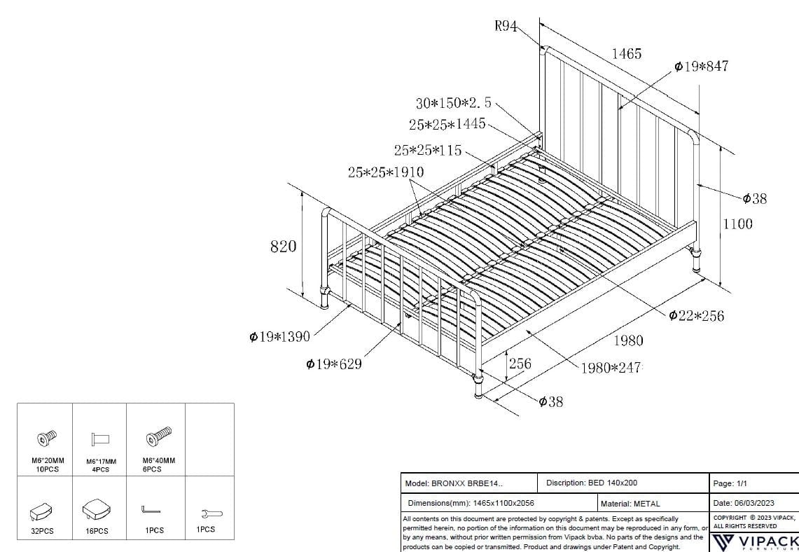 Gemaakt van stevig metaal en afgewerkt in een stijlvolle matte verf, past het Bronxx bed moeiteloos in iedere kamer, of je nu voor een modern, vintage of urban look gaat.