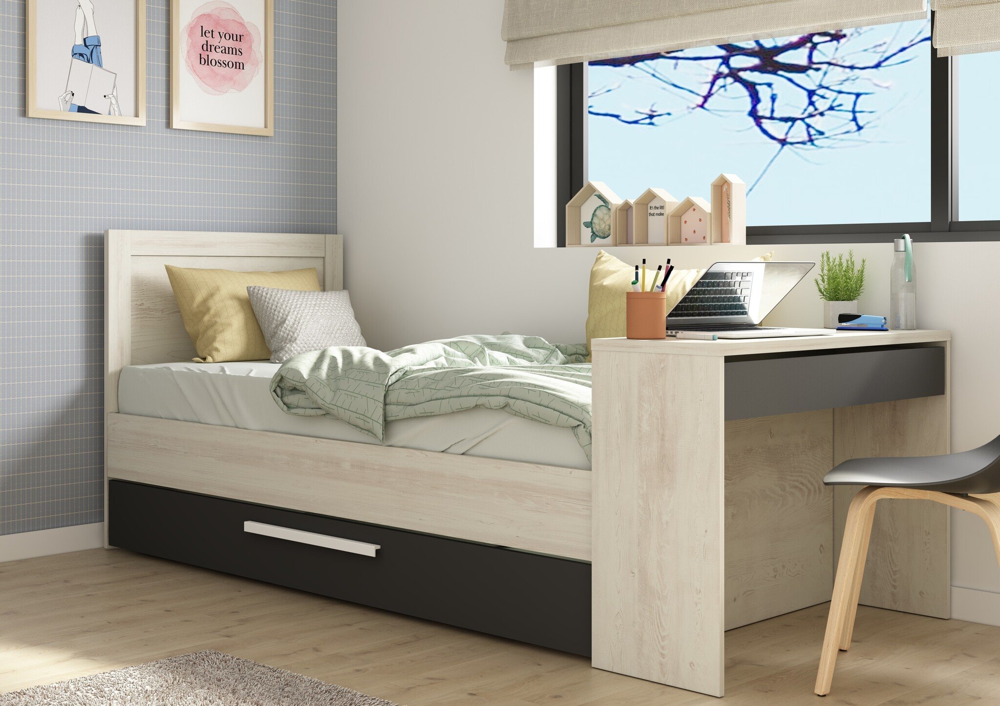 Kinderbed Shipley - Grijs eiken met Antraciet