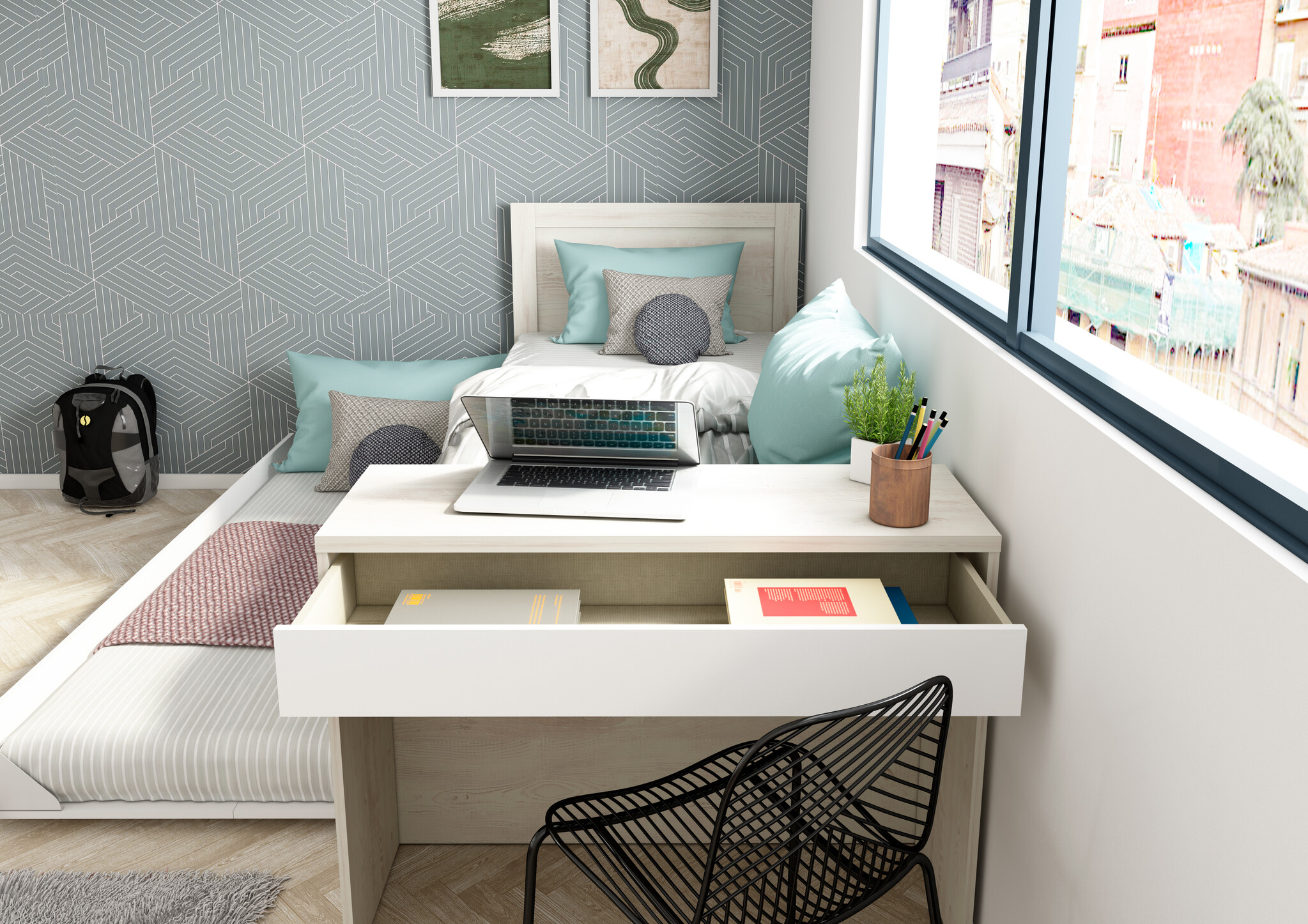 Inclusief bureau en slaaplade