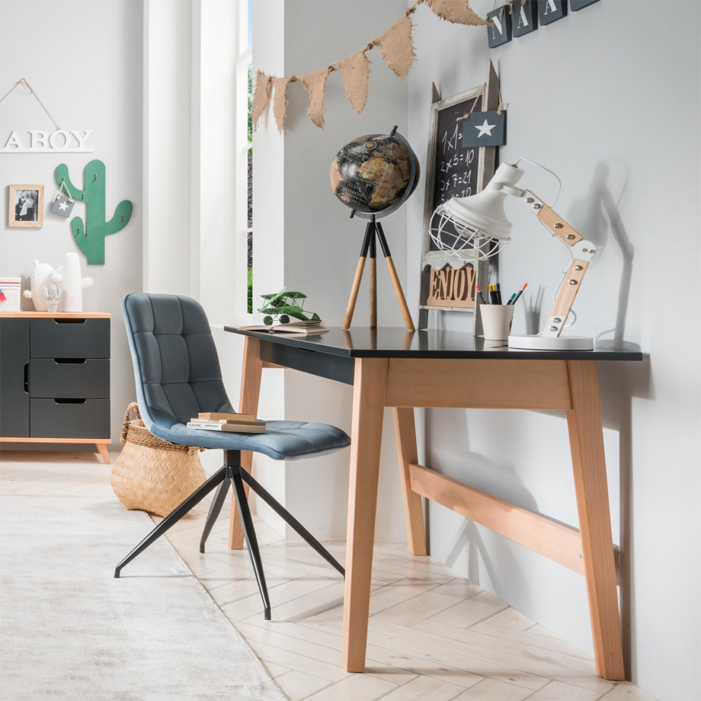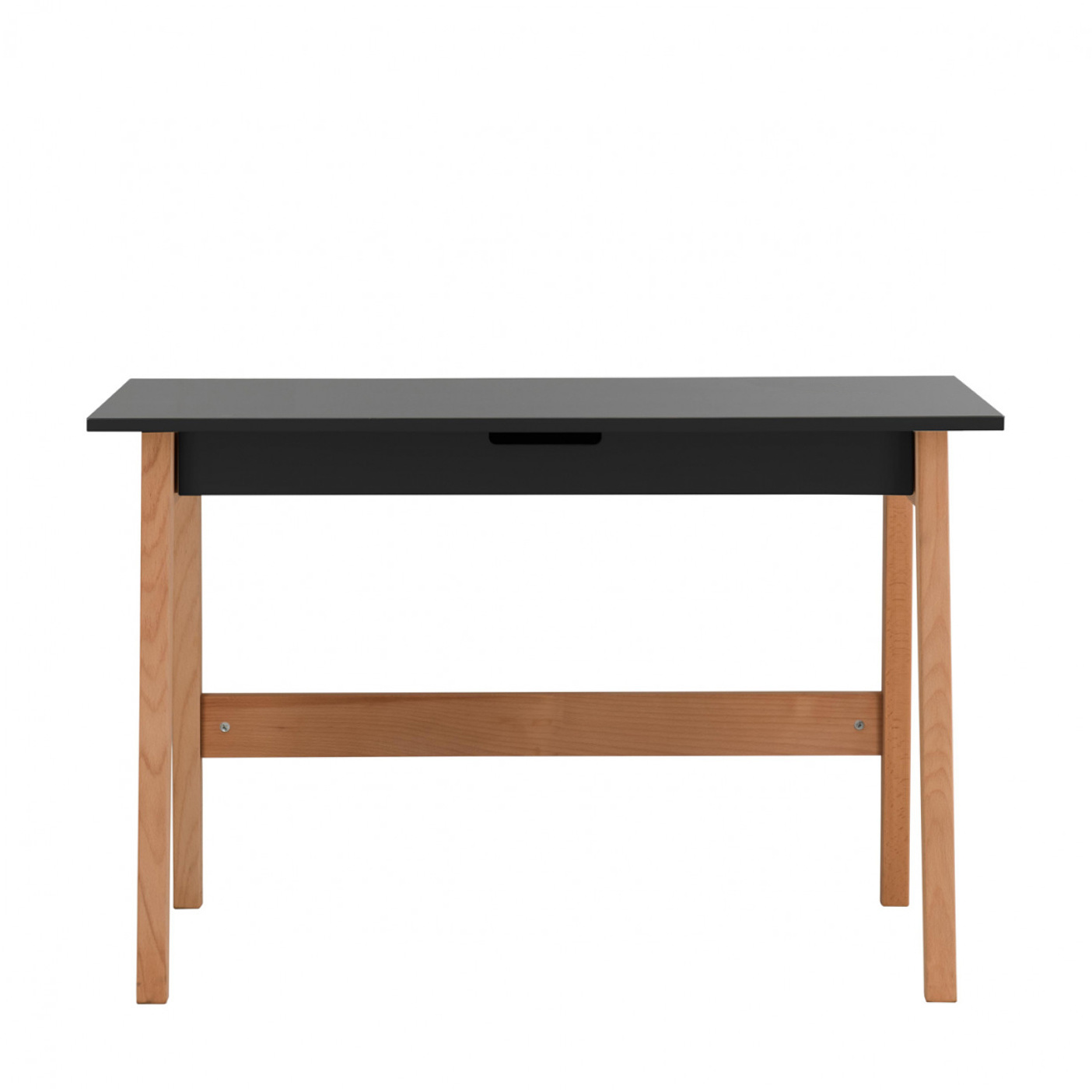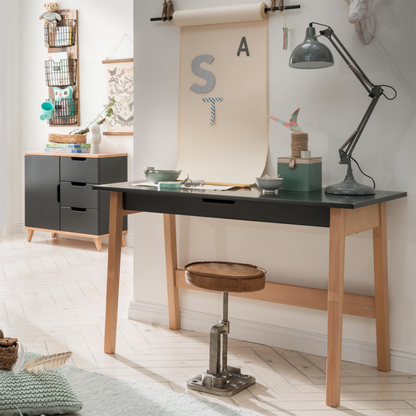 Gaaf bedacht bureau Color van Infans. Goede balans van massief hout en gelakt MDF.