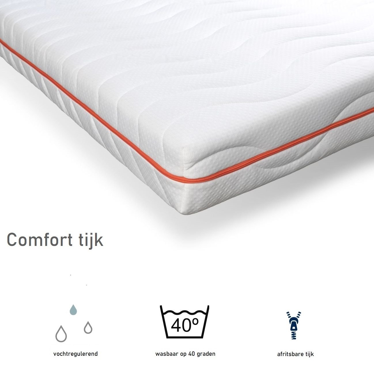 - De tijk van dit matras is afritsbaar en wasbaar op 40 graden