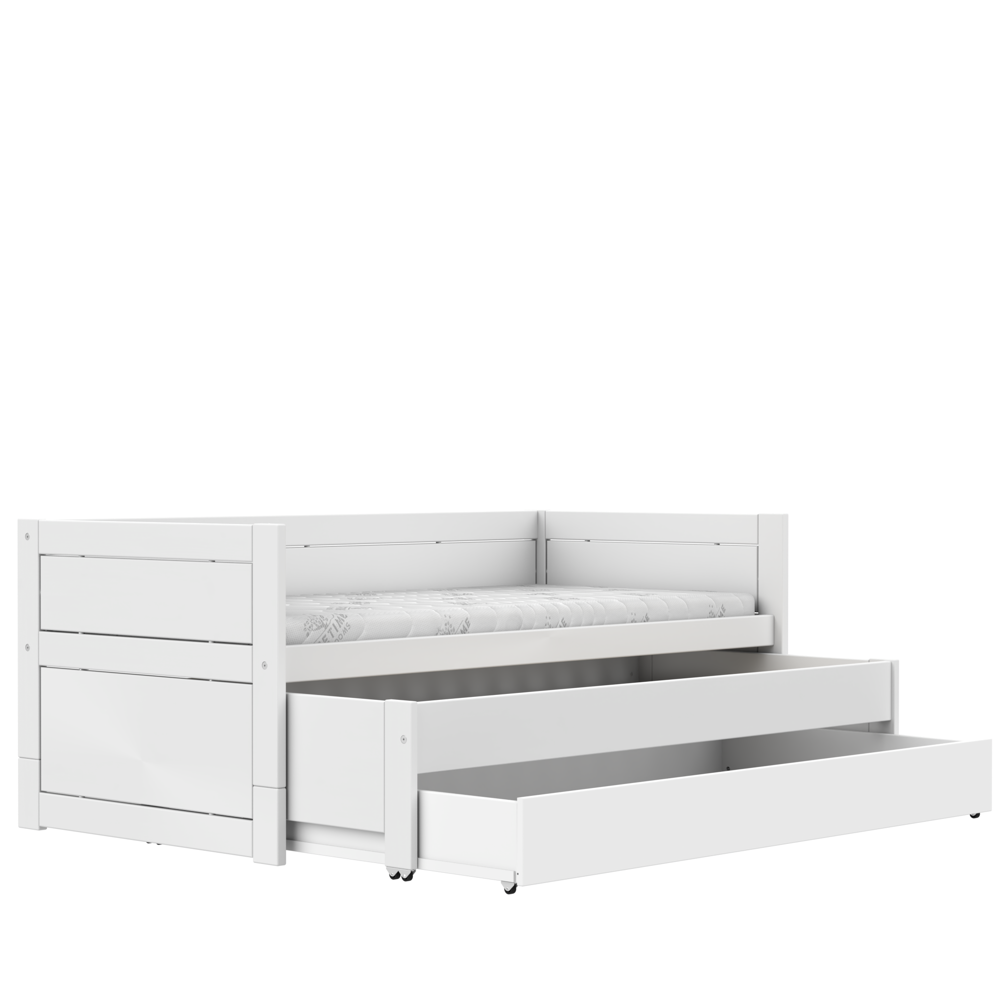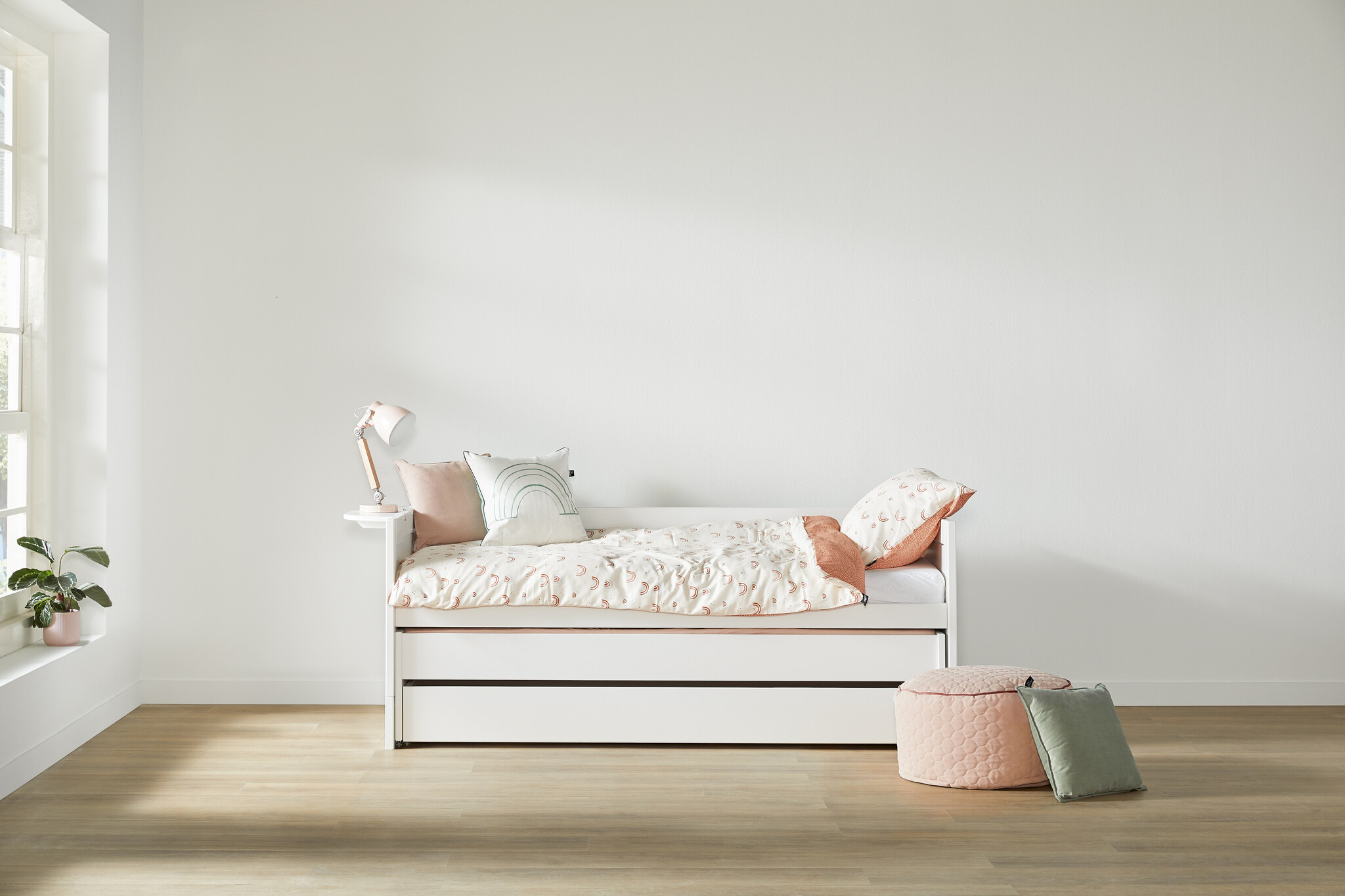 Ideale bedbank/kajuitbed inclusief logeerbed en opberglades voor al je spontane logeerpartijtjes. Verkrijgbaar in Greywash, Whitewash en dekkend wit.