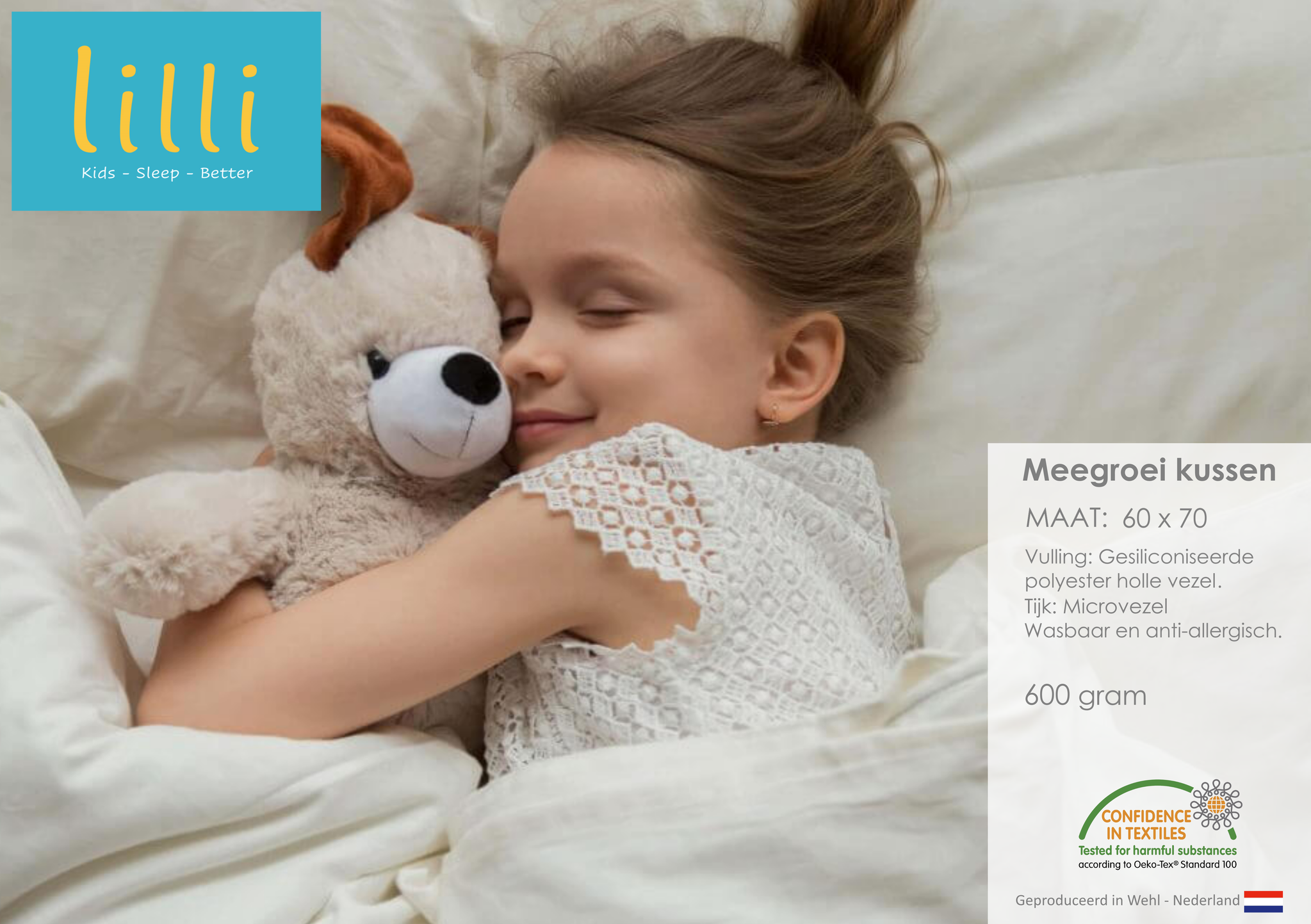 Het Lilli kinderkussen met gesiliconiseerde polyester holle vezel vulling biedt diverse voordelen, vooral voor kinderen. Hier zijn de belangrijkste voordelen: