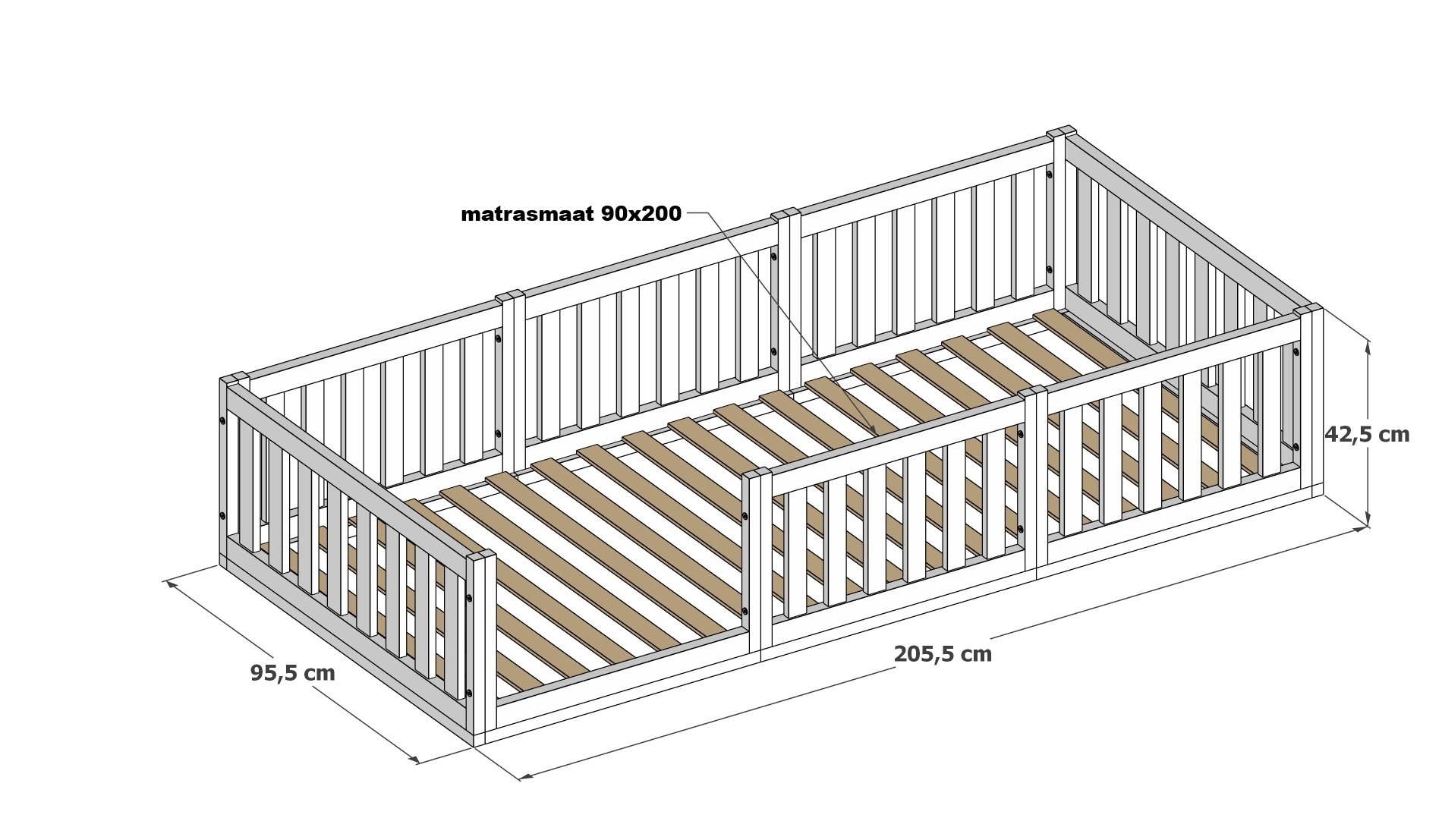 Geef je peuter een veilige en speelse slaapplek met dit Montessori vloerbed in de maat 90x200.