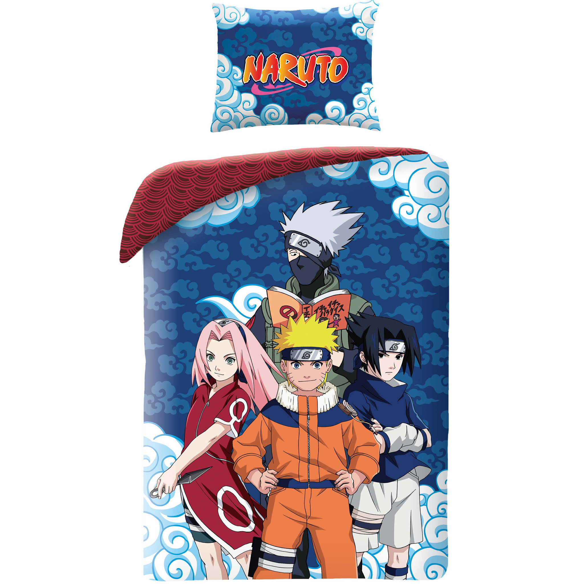 Naruto Dekbedovertrek, Sasuke Sakura Kakashi - Eenpersoons - 140 x 200 + 65 x 65 cm - Katoen
