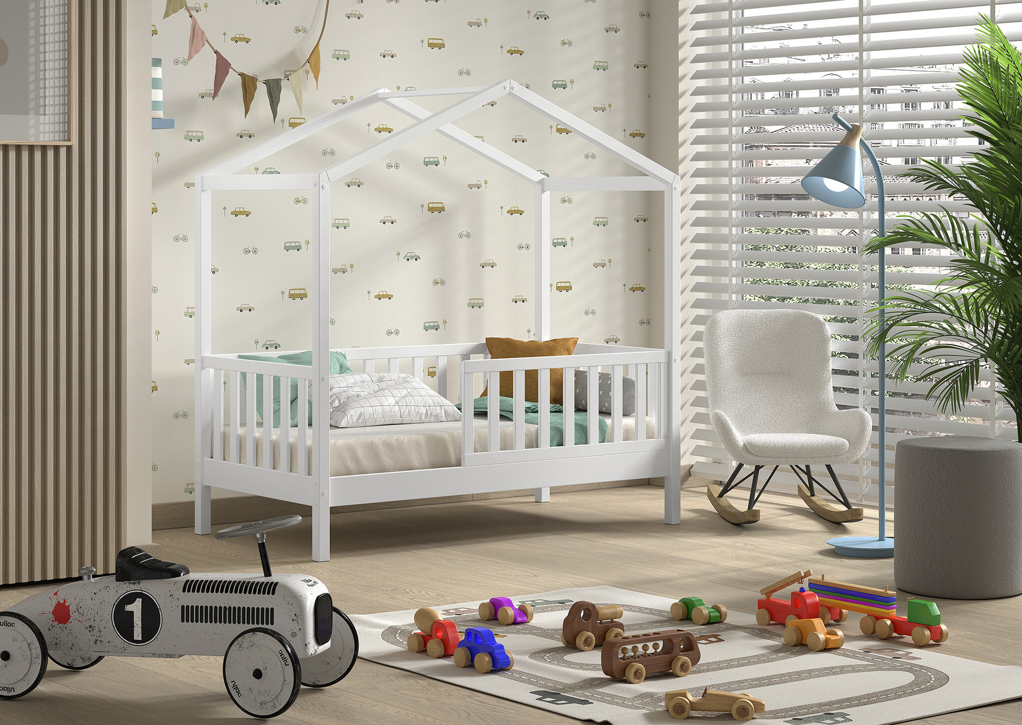 Dit peuterbedje in de maat 70x140 in de vorm van een bedhuisje is helemaal geweldig.
