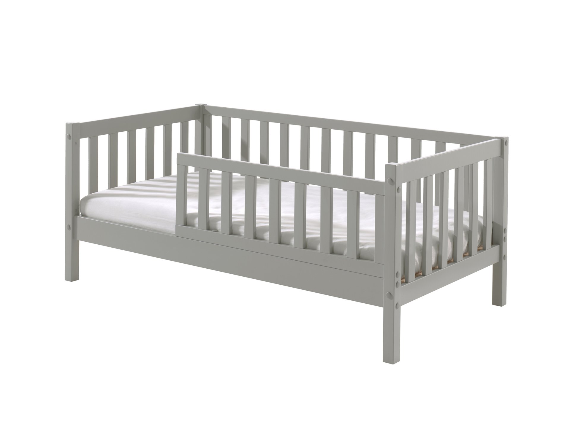 Dit Peuterbed Toddler 70 in het grijs is een ideale stap van een babybed naar een groter bed. Je kleine zal zelfstandig uit bed kunnen kruipen en 's nachts veilig omringt liggen binnen de extra hoge veilige uitvalbeveiliging rondom.
