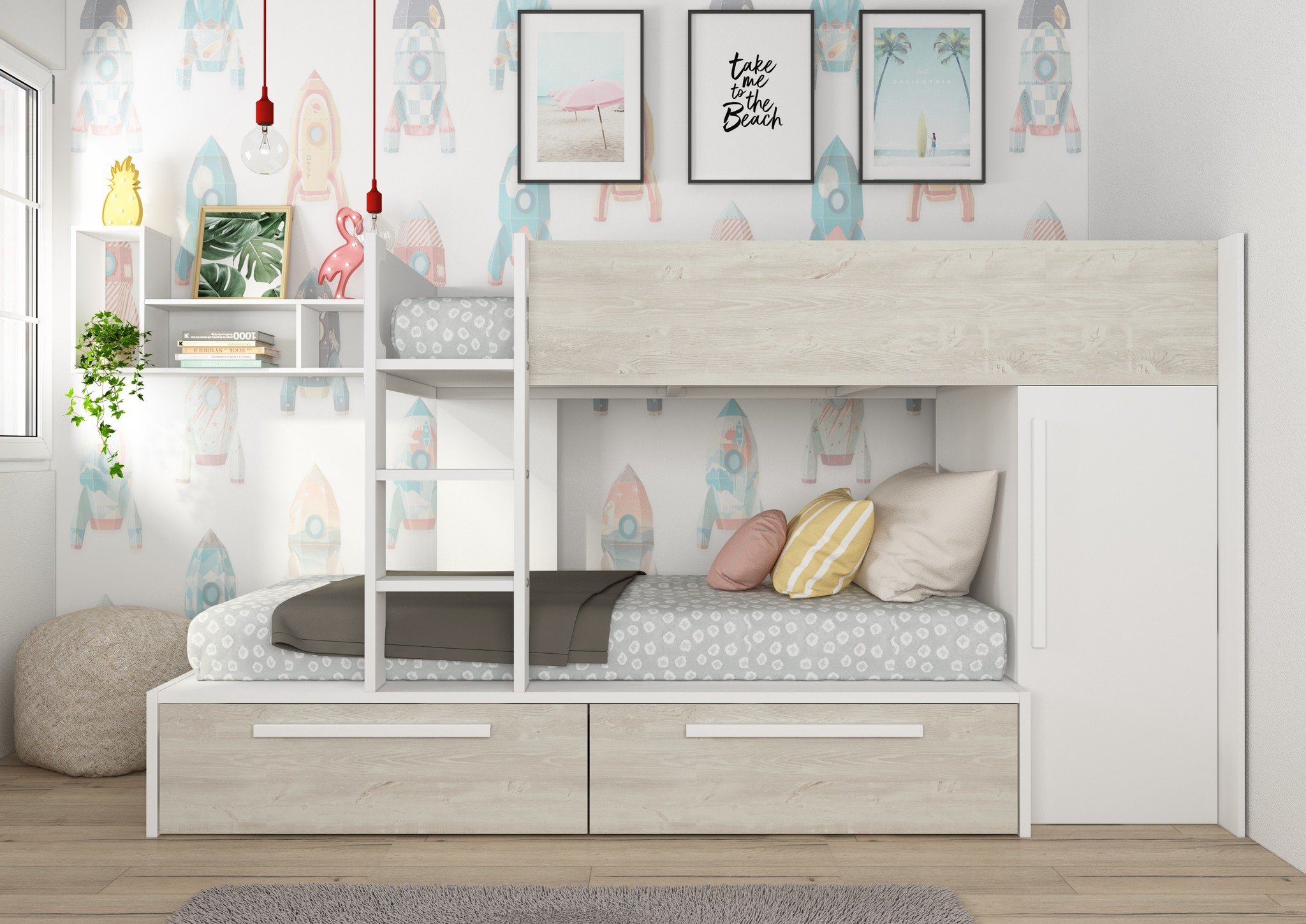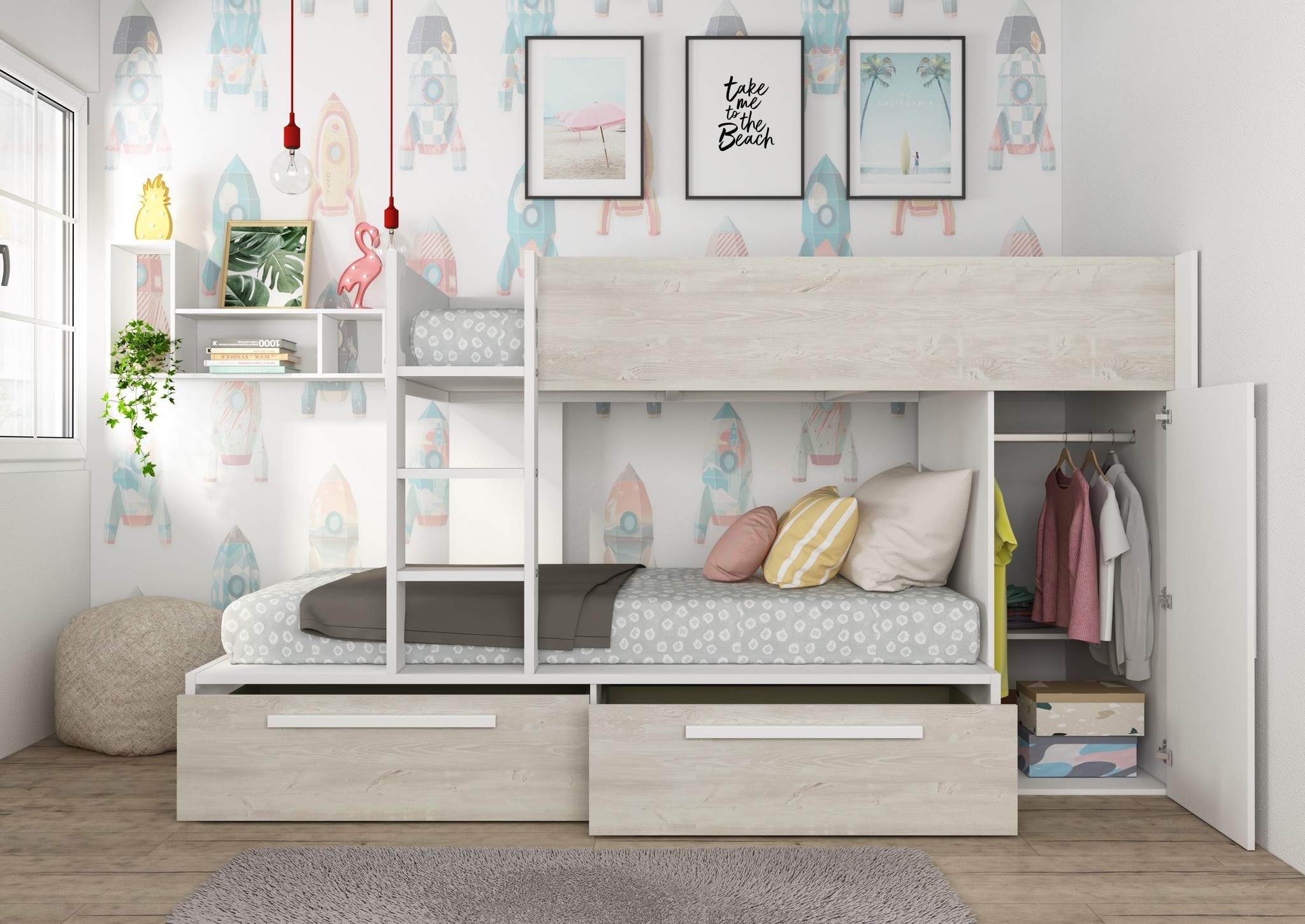 Naast de twee prettige slaapplaatsen is dit stapelbed voorzien van een zee aan opbergruimte.