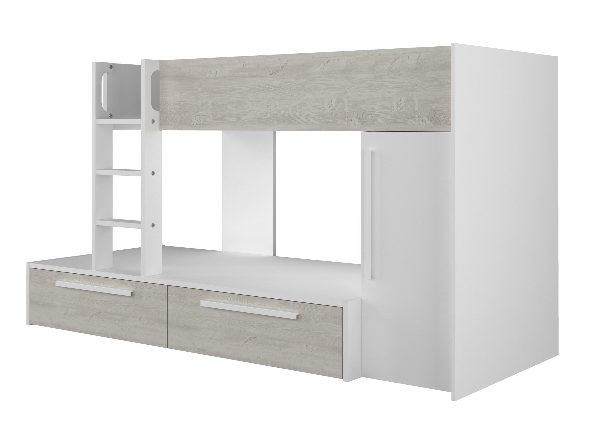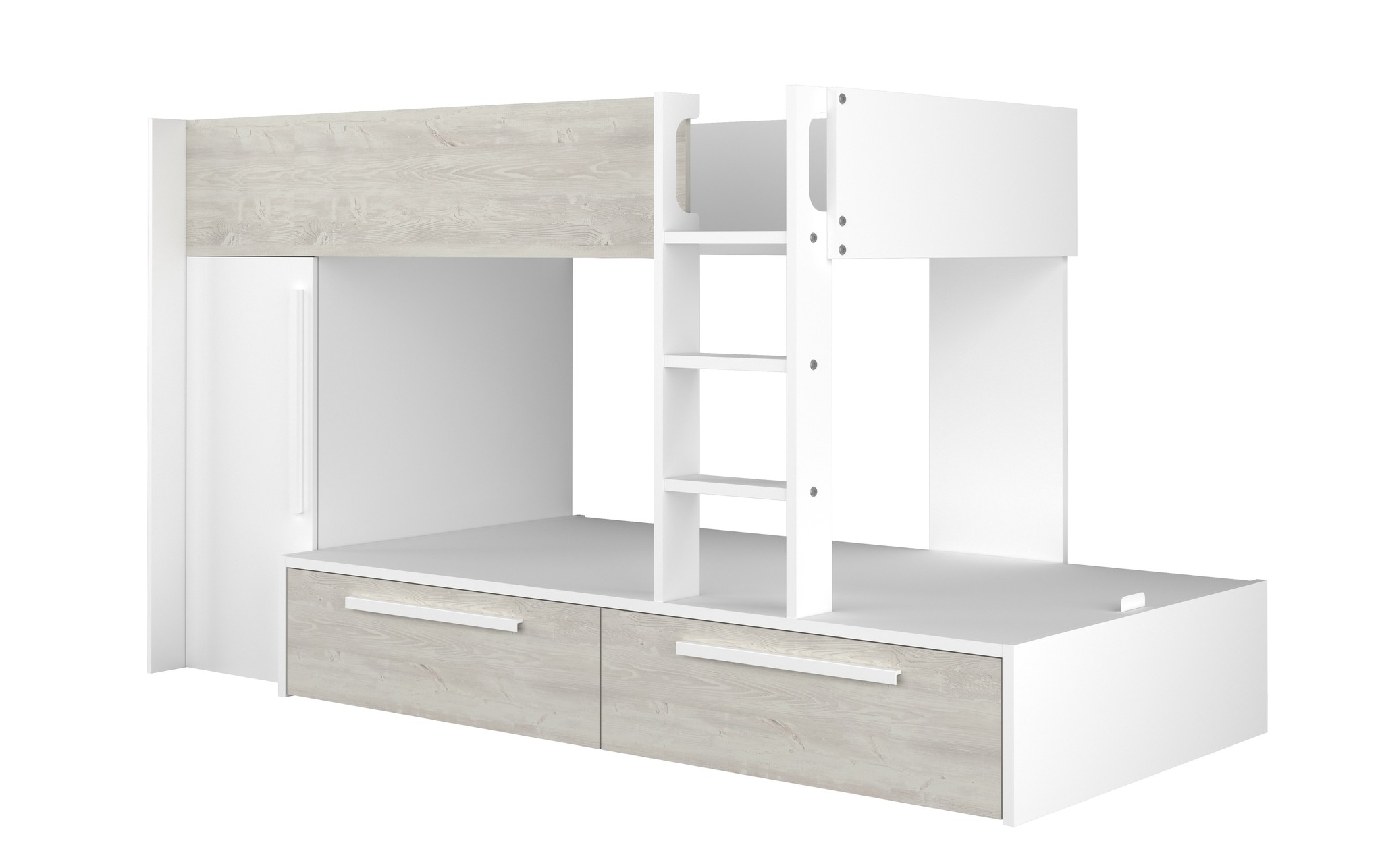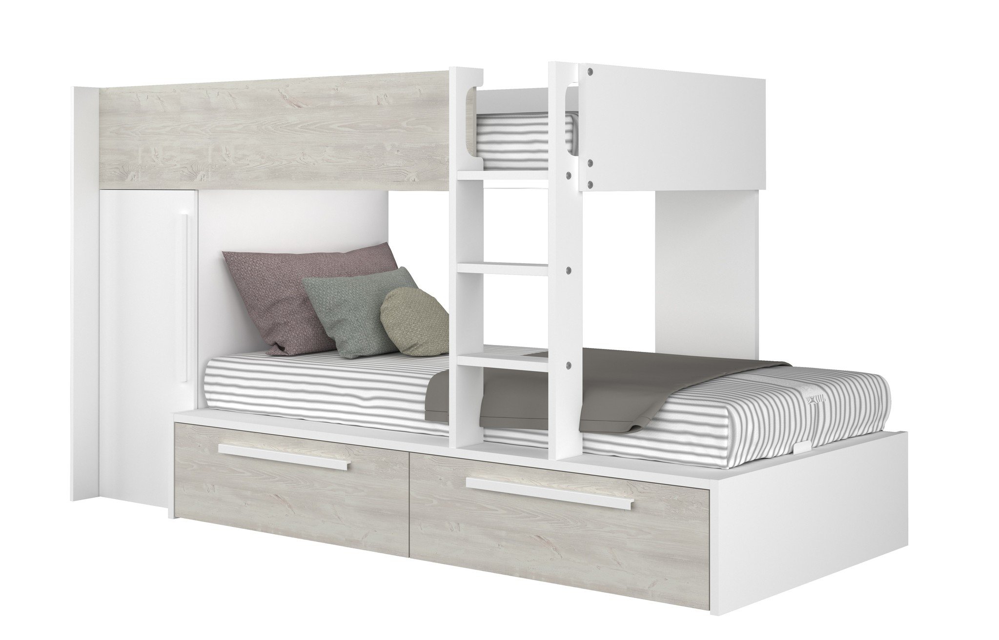 Stapelbed Jules Grijs eiken met kast en 2 lades
