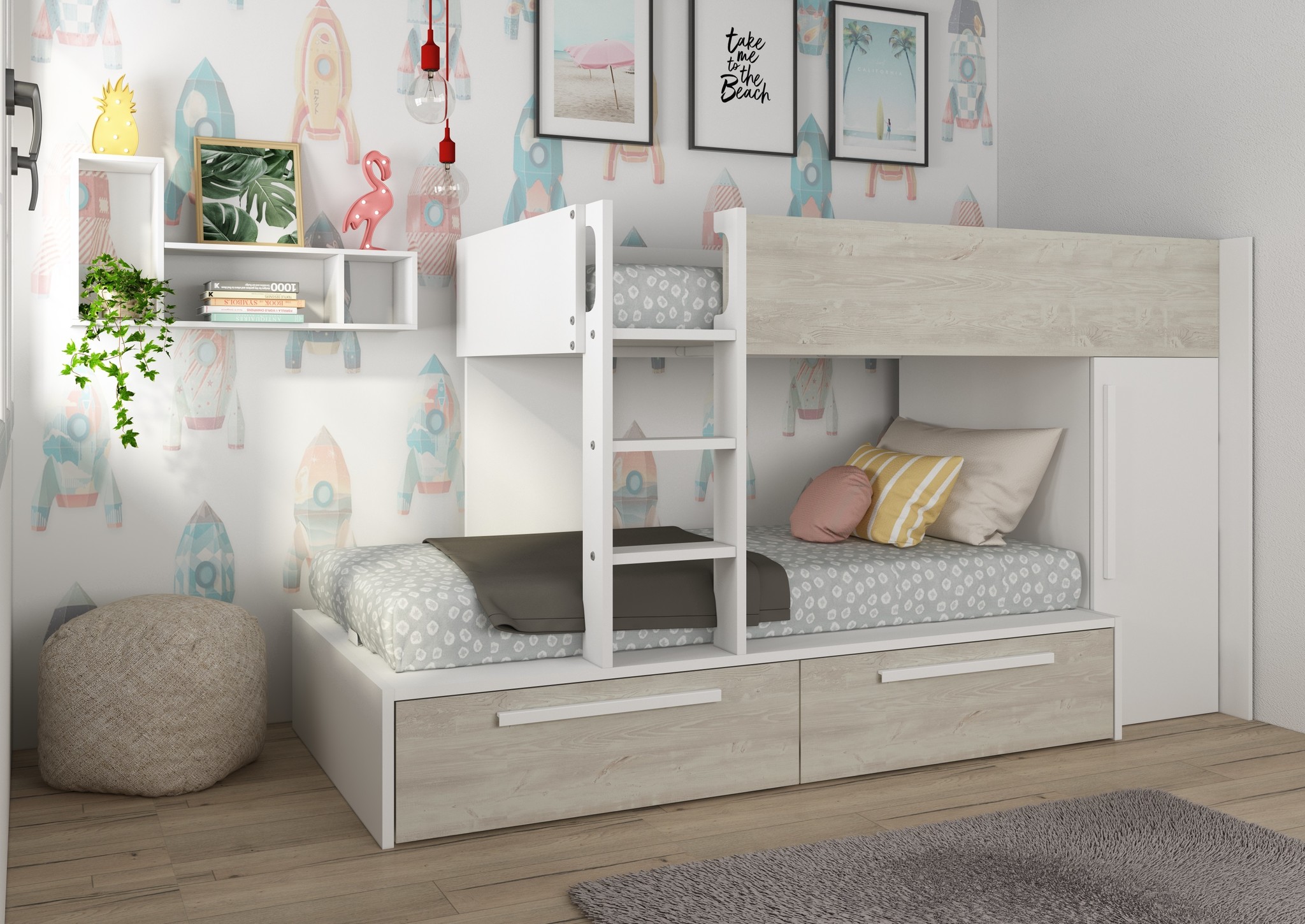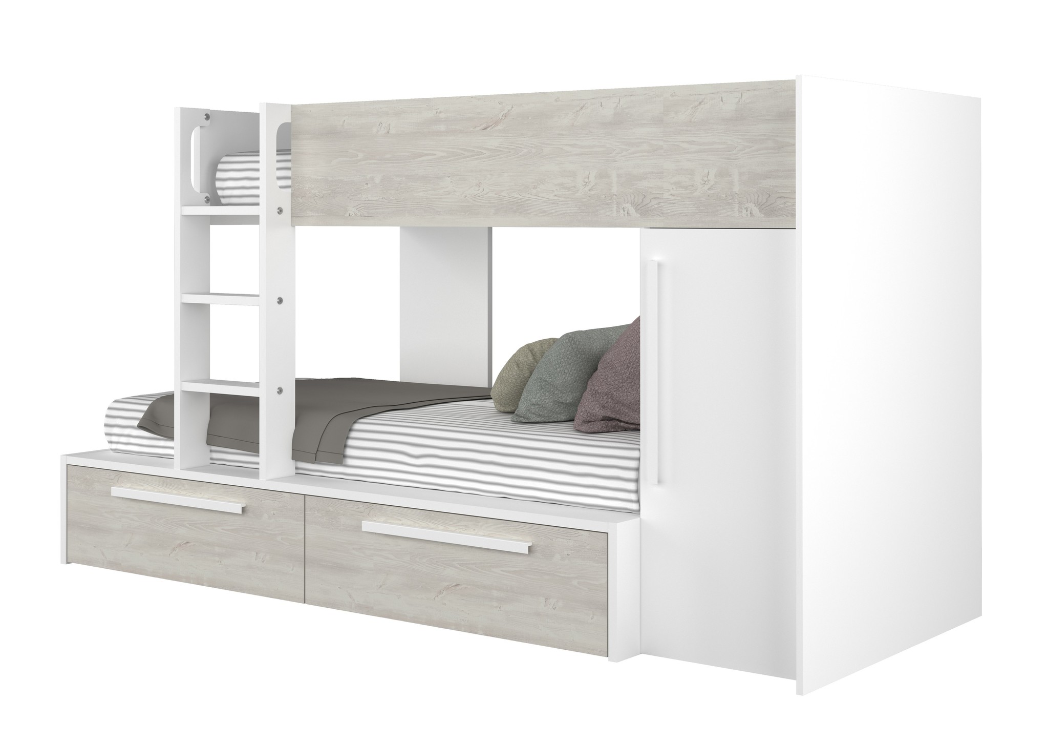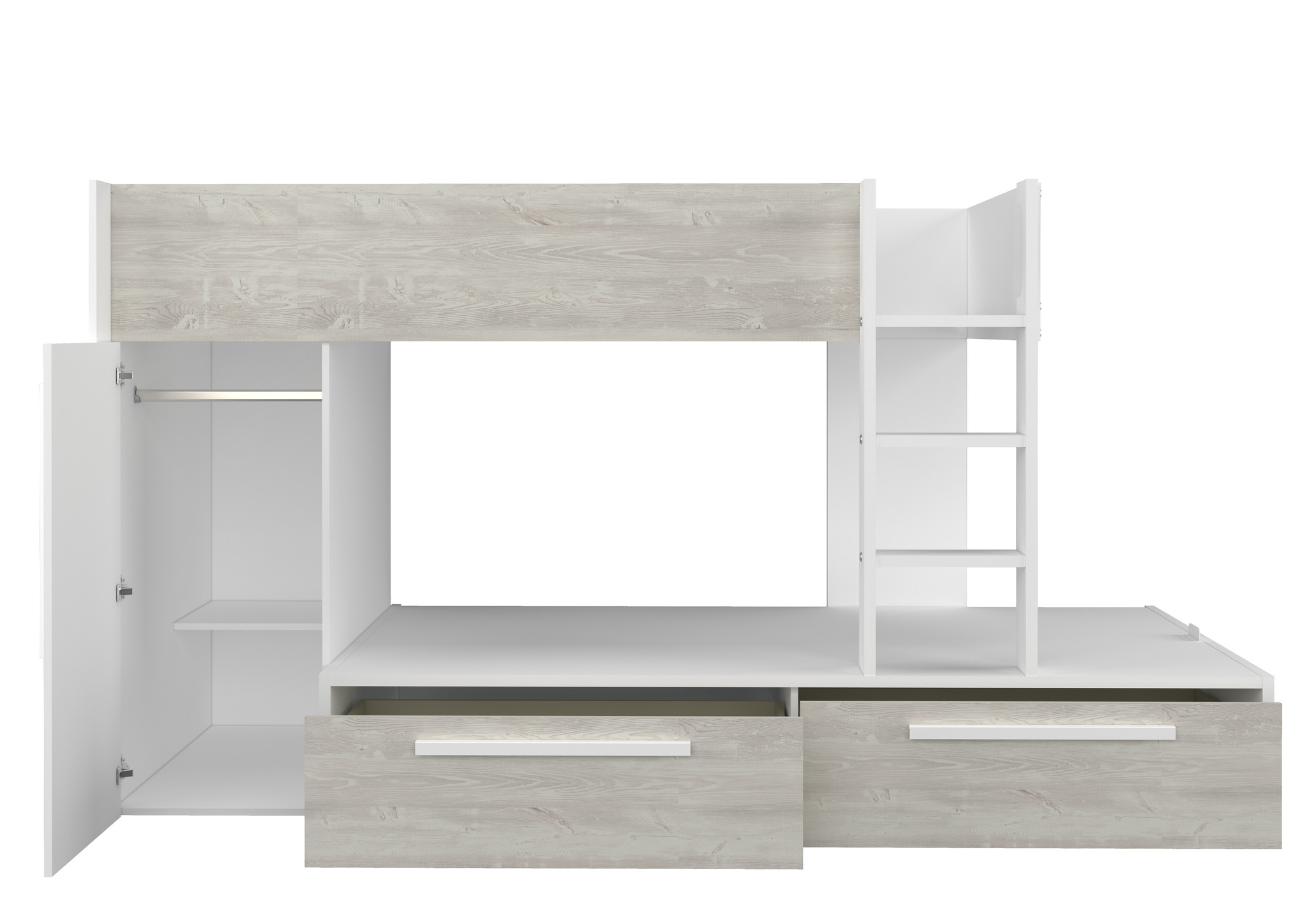 Stapelbed Jules Grijs eiken met kast en 2 lades
