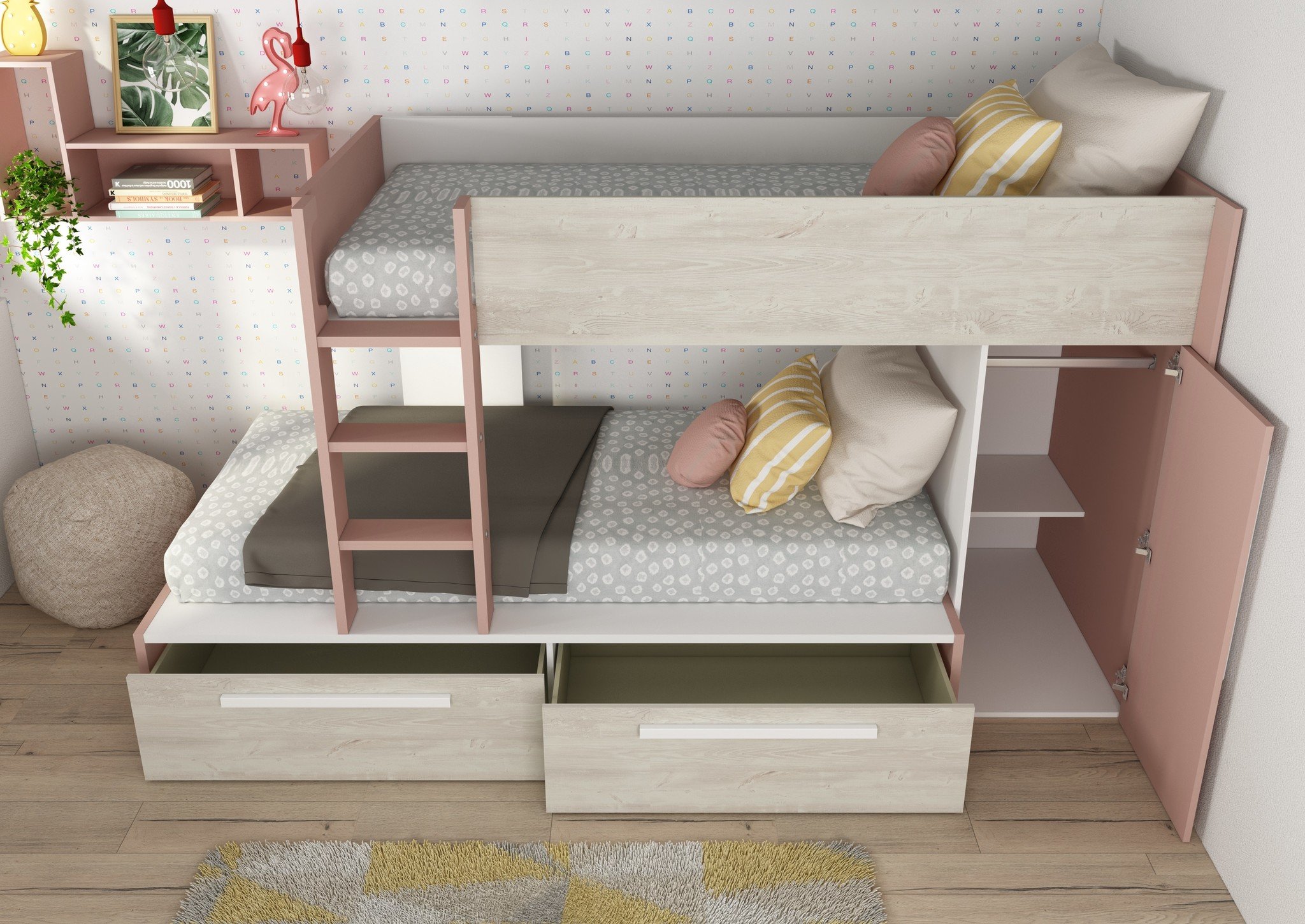 Stapelbed Jules Roze met kast en 2 lades