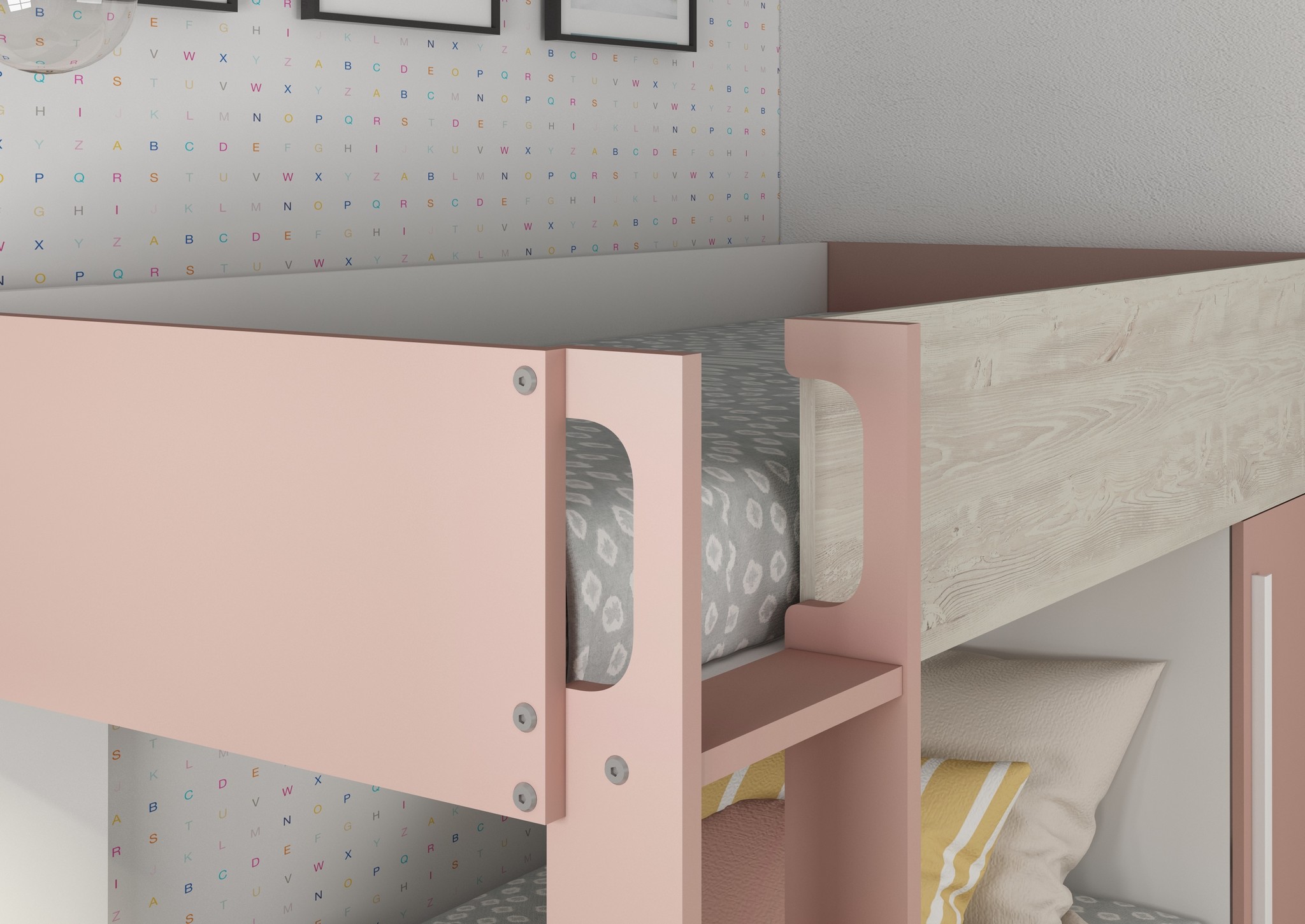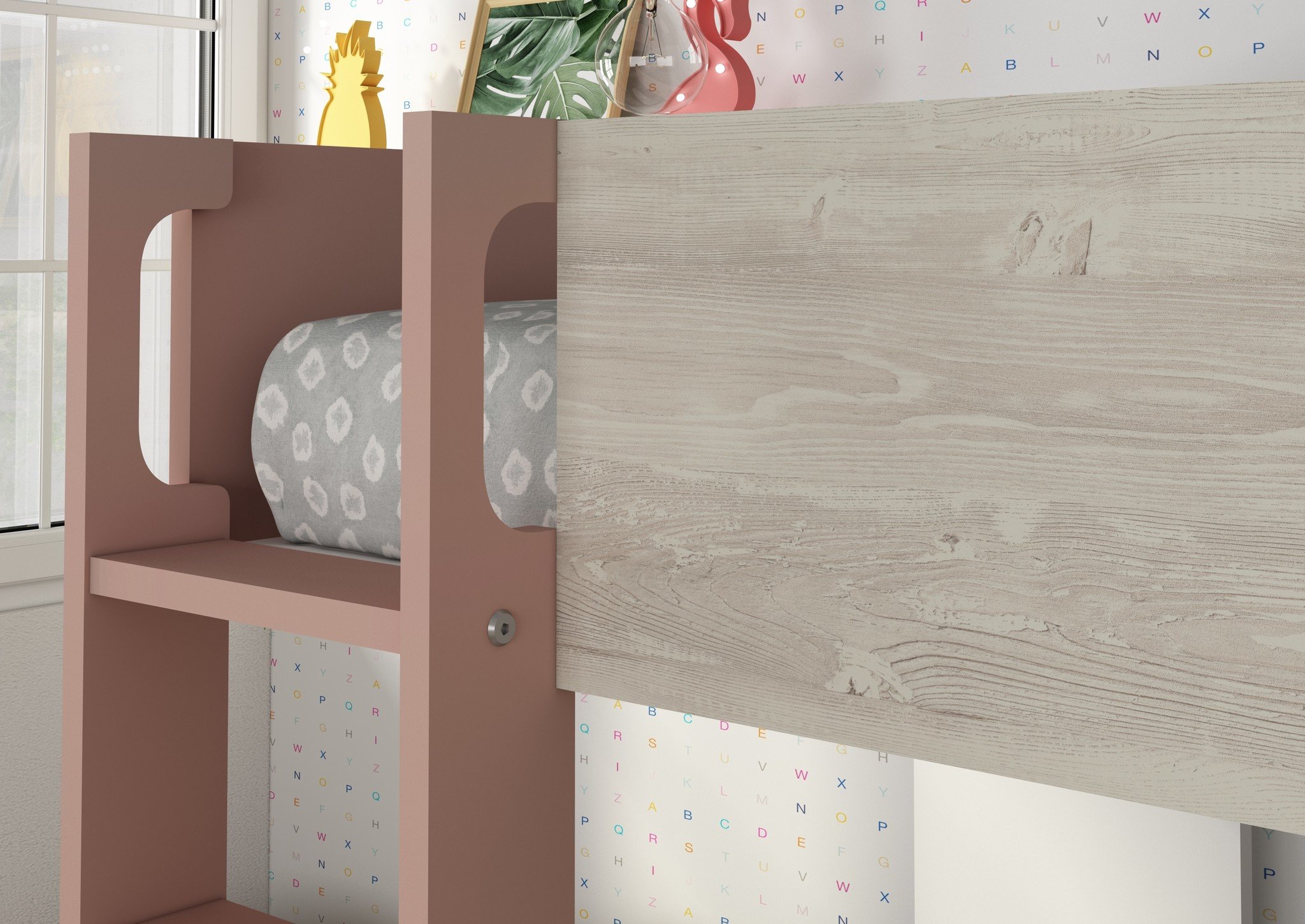 | Kleur | Grijs eiken en roze elementen |